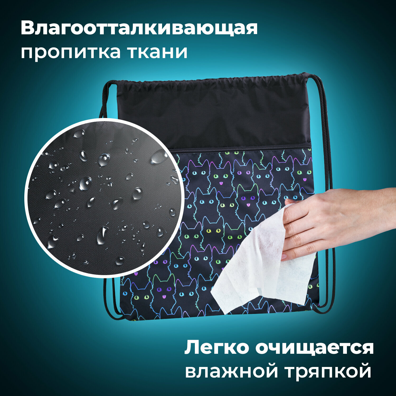 СохранитьСумка / мешок / рюкзак для сменной обуви (сменки) Brauberg, карман на молнии, с ручкой, сеточка для вентиляции, 51х41 см, Cats интересное: