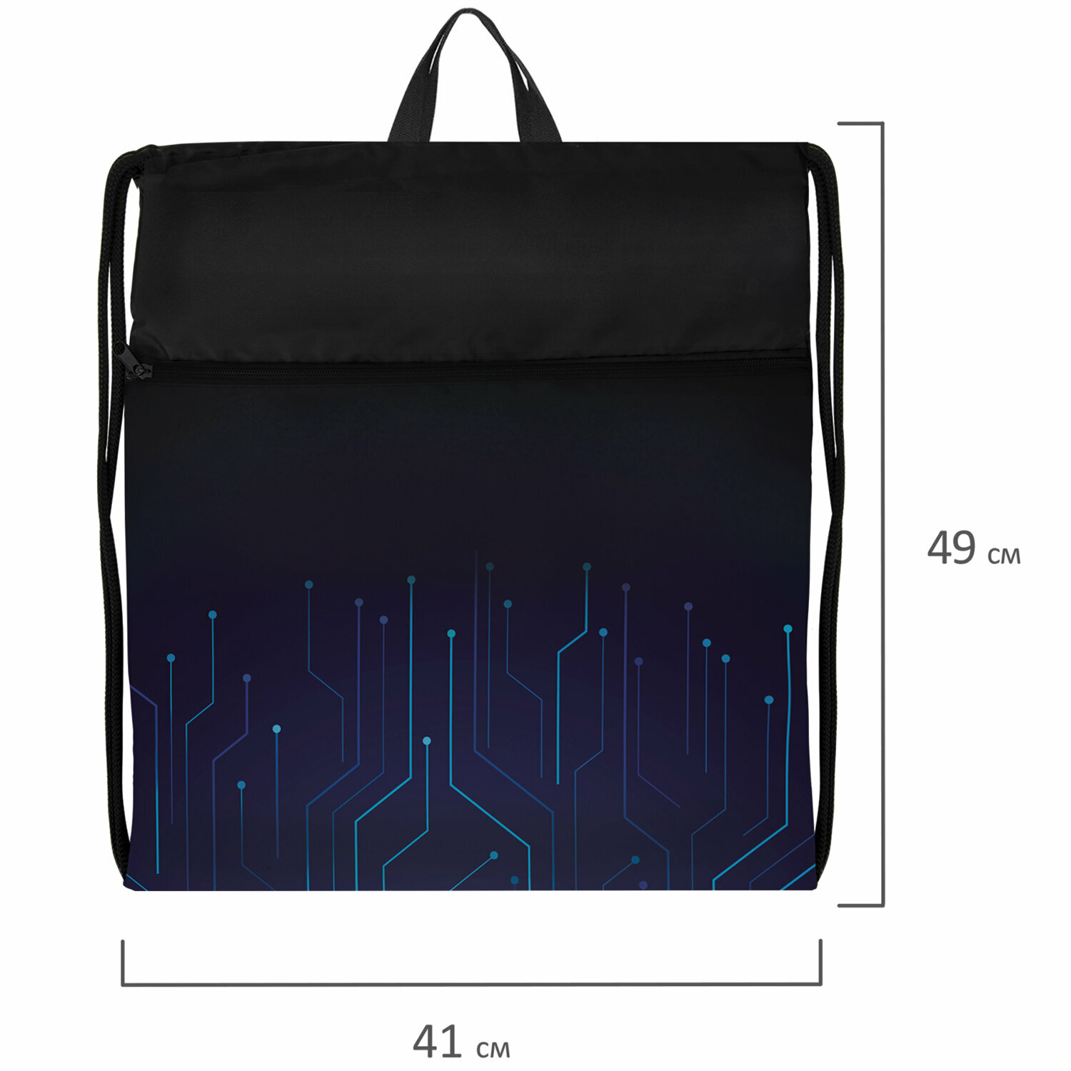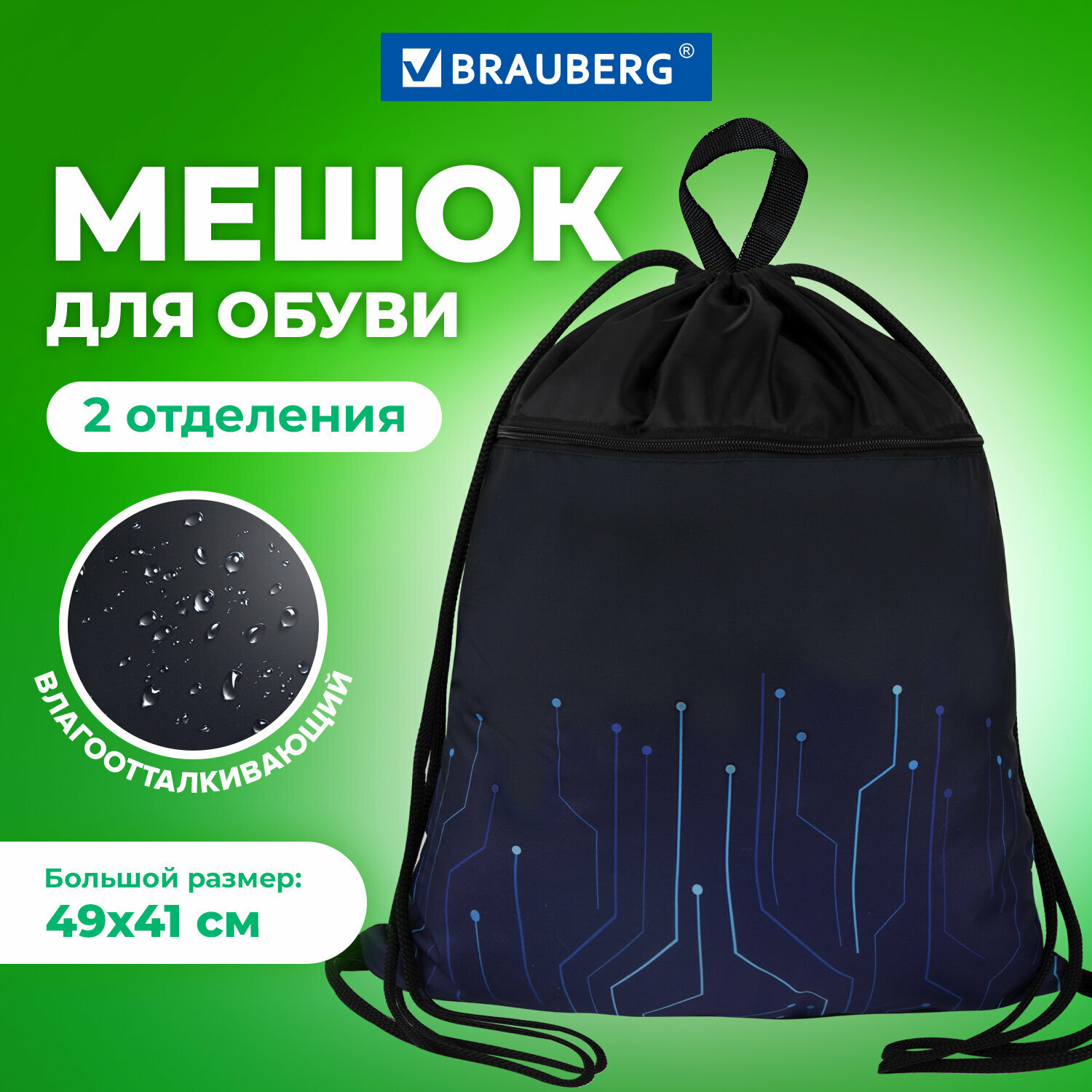 Мешок для обуви BRAUBERG большой, с ручкой, карман на молнии, сетка для вентиляции, 49х41 см, "Electro", 271061, в комплекте 1шт интересное: