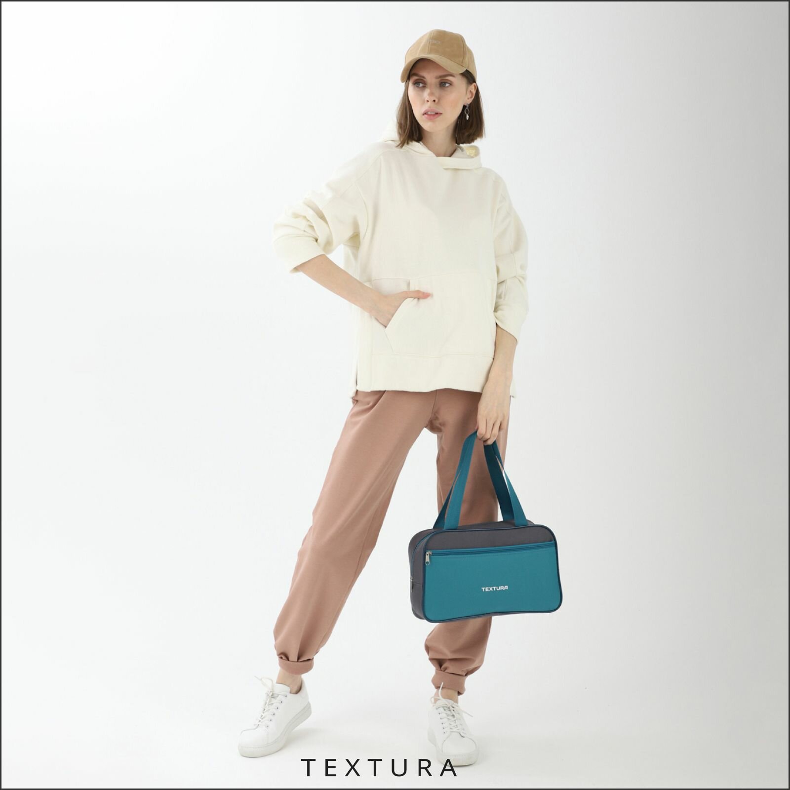 Сумка для обуви на молнии, наружный карман, TEXTURA, цвет серый/бирюзовый интересное: