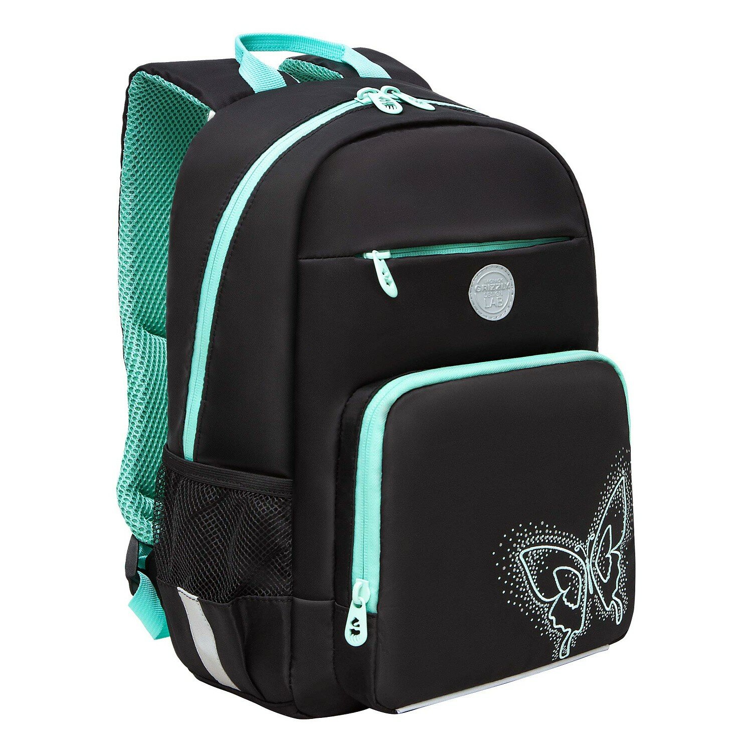 Купить Рюкзак школьный, 40 х 25 х 13 см, Grizzly, эргономичная спинка, отделение для ноутбука, чёрный/бирюзовый