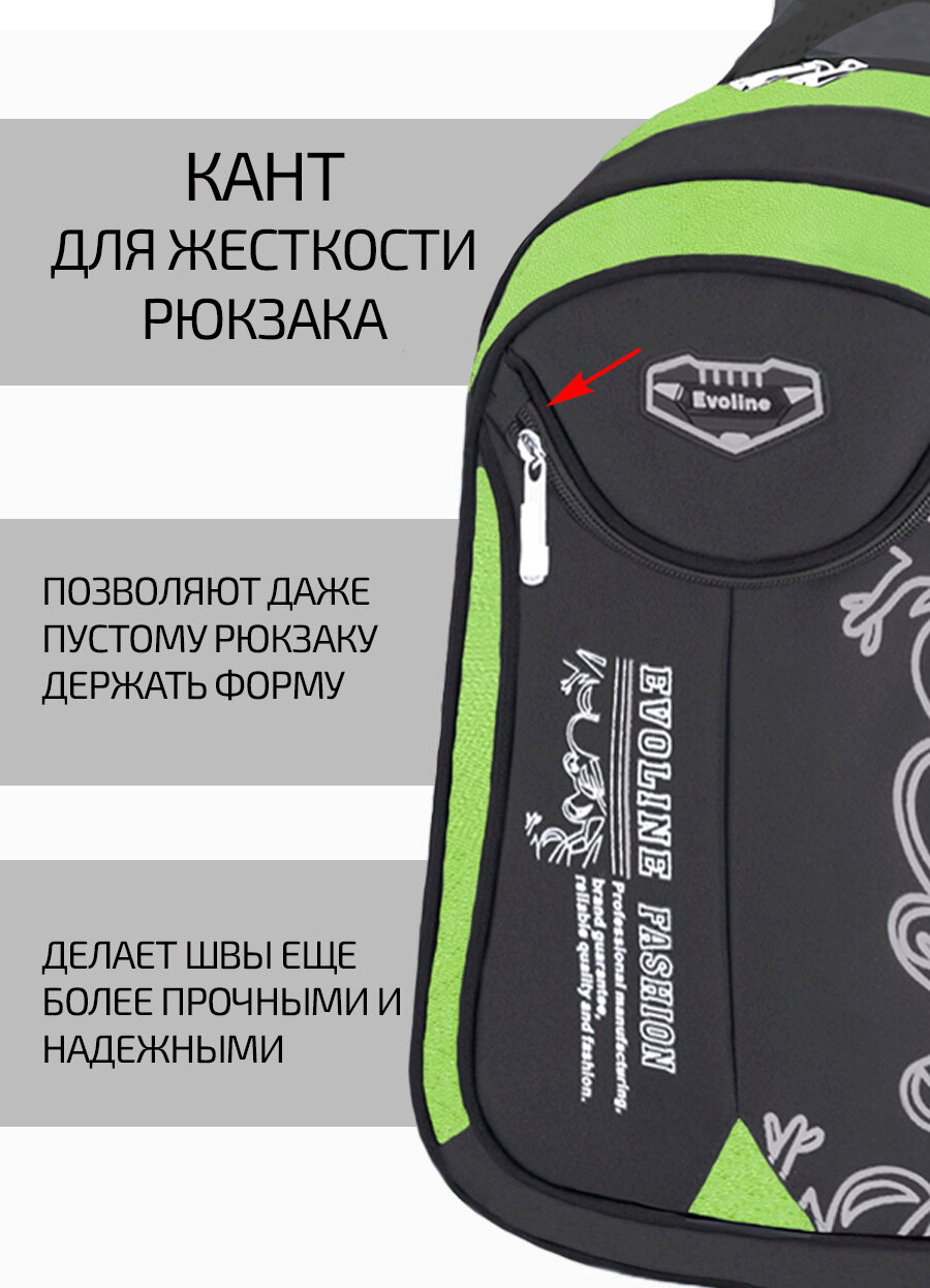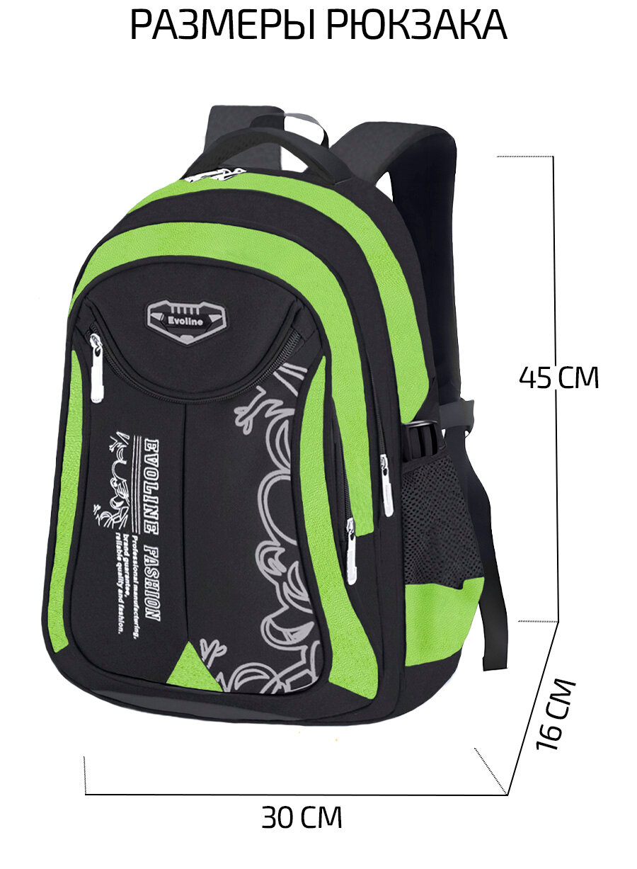 Рюкзак школьный для подростка, мальчика, девочки Evoline, зеленый, черный интересное: