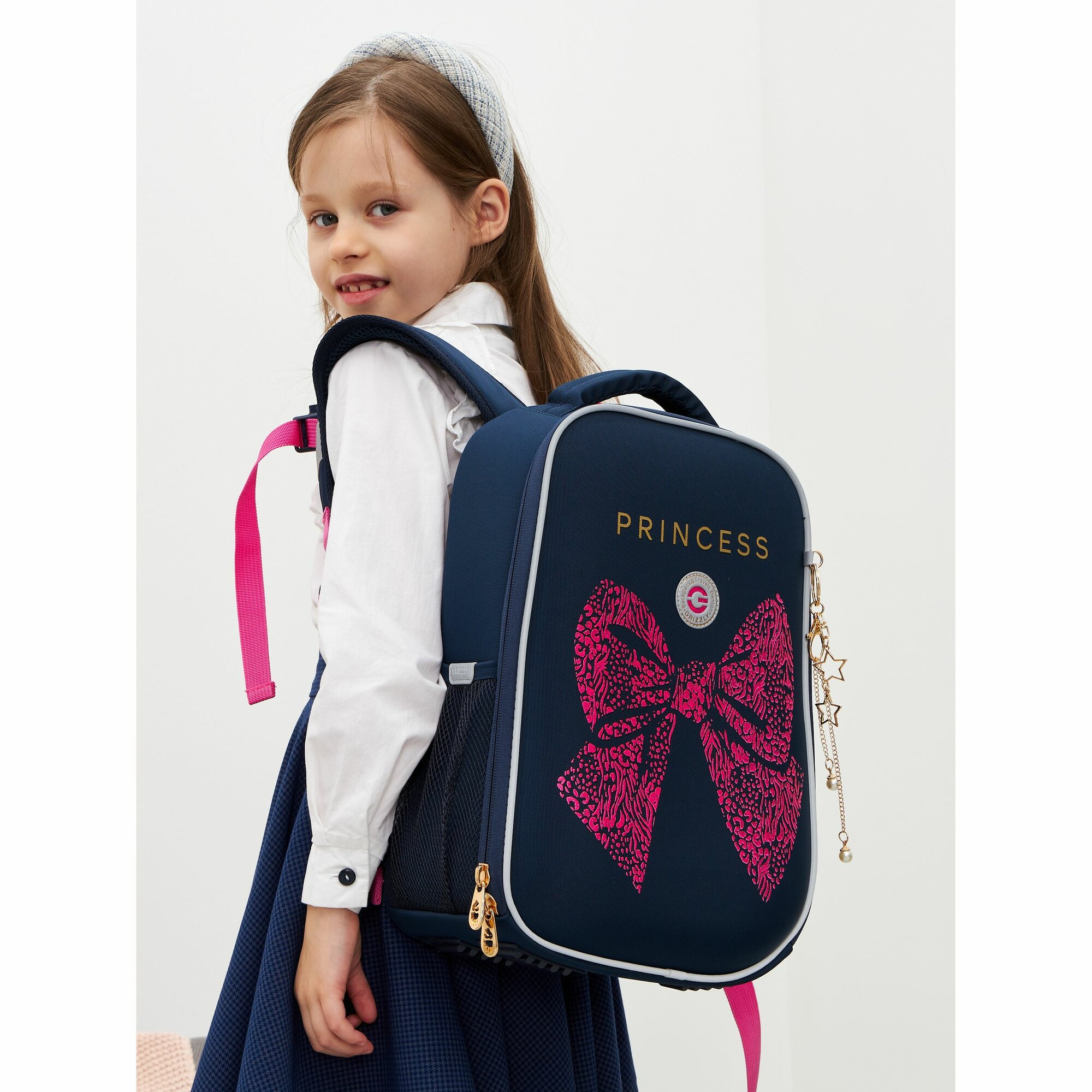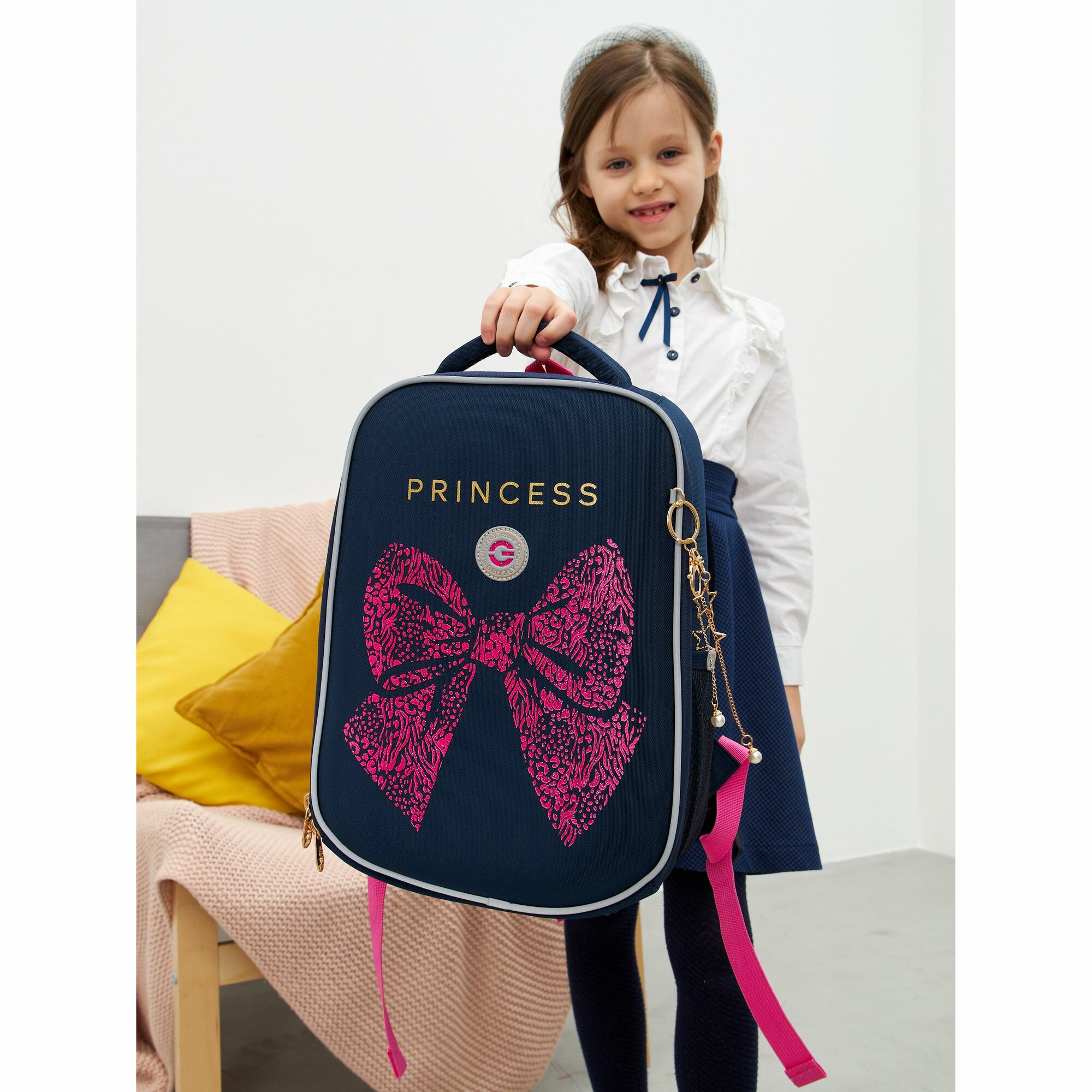 Ранец GRIZZLY анатомическая спинка, облегченный, для девочек, PRINCESS, 37х26х16 см, RAw-396-7/3, 1шт в компл.