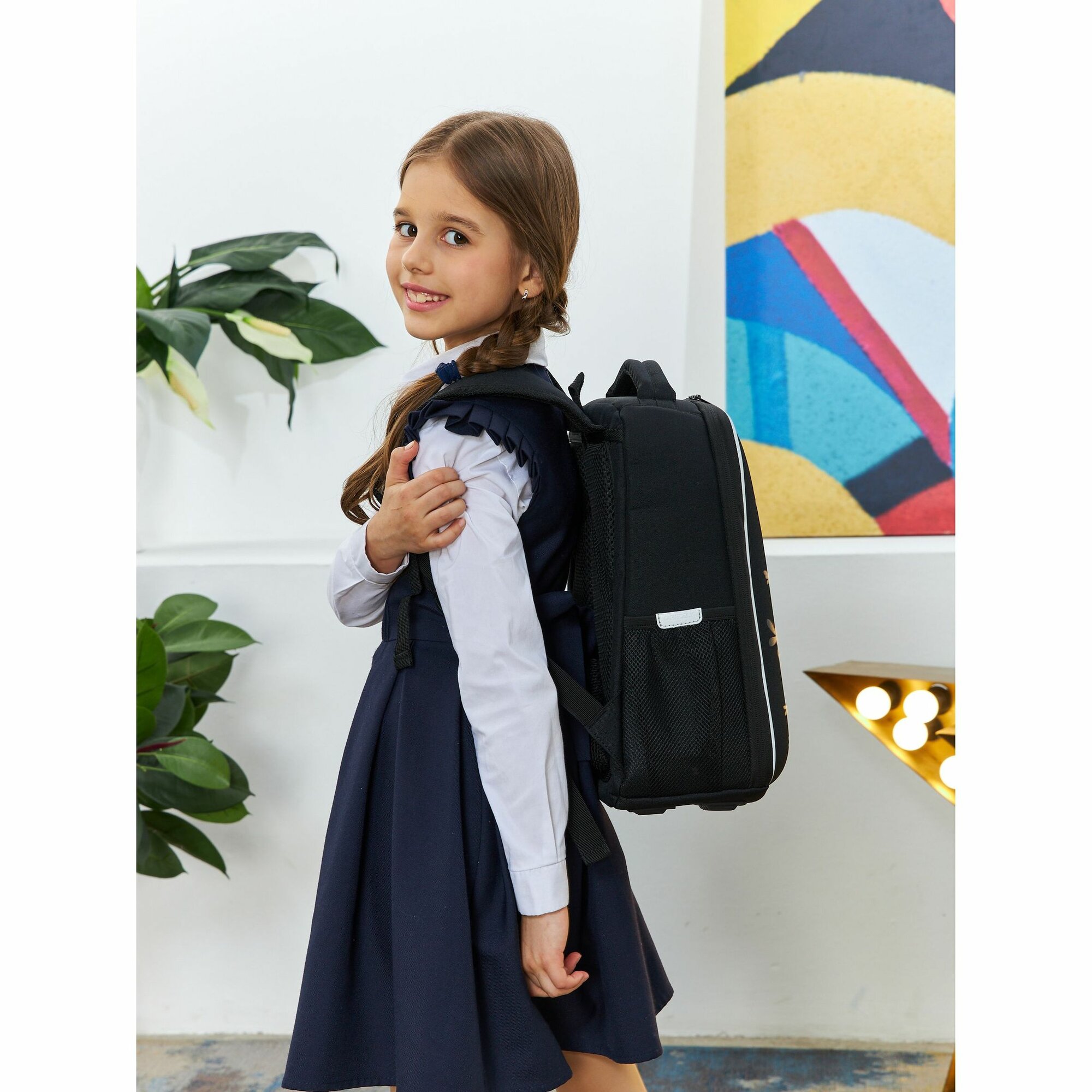 Ранец каркасный, 37 х 26 х 16 см, Grizzly, + брелок, чёрный/золотой