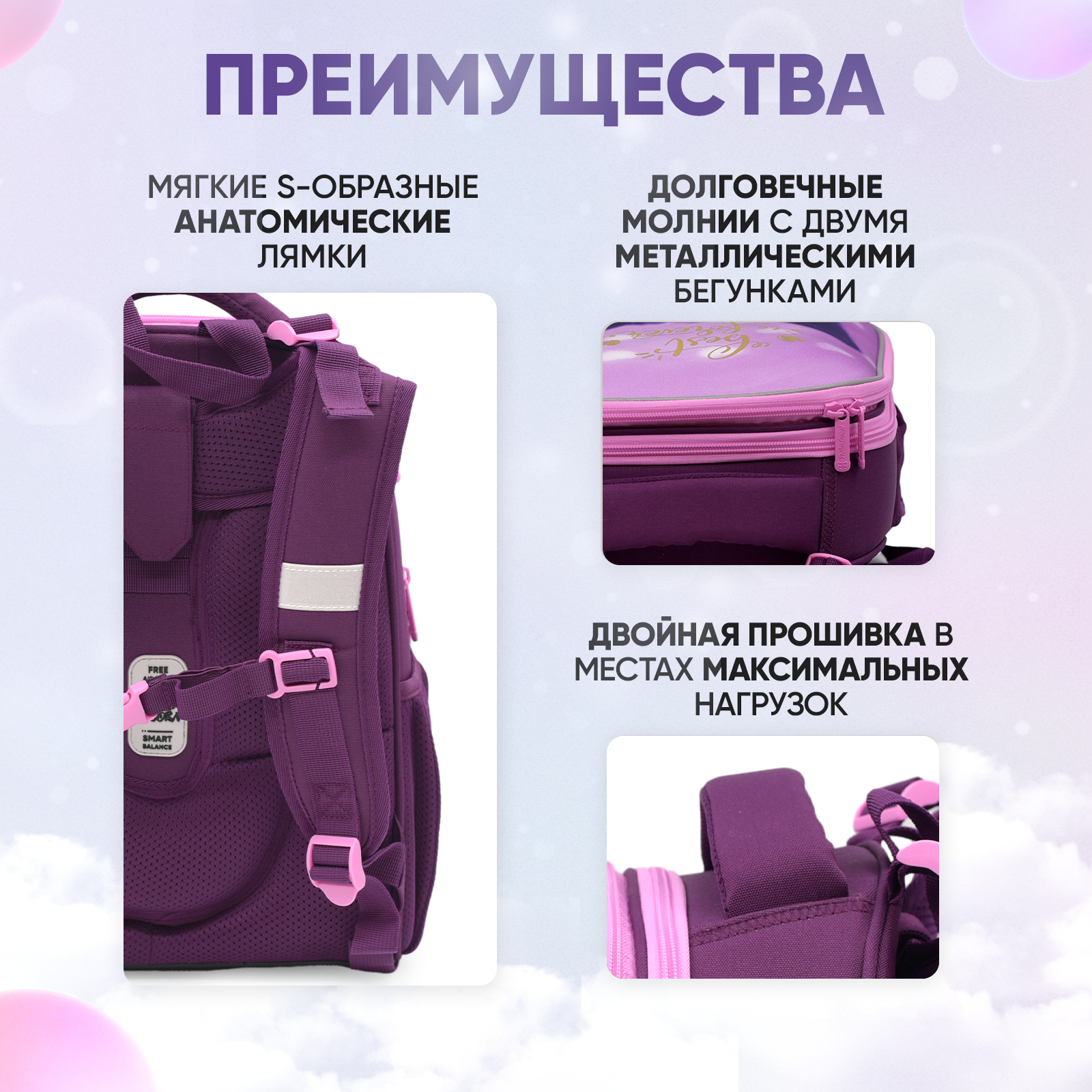 Ранец / рюкзак для девочки школьный ортопедический 1-4 класс Сиреневая кошка интересное: