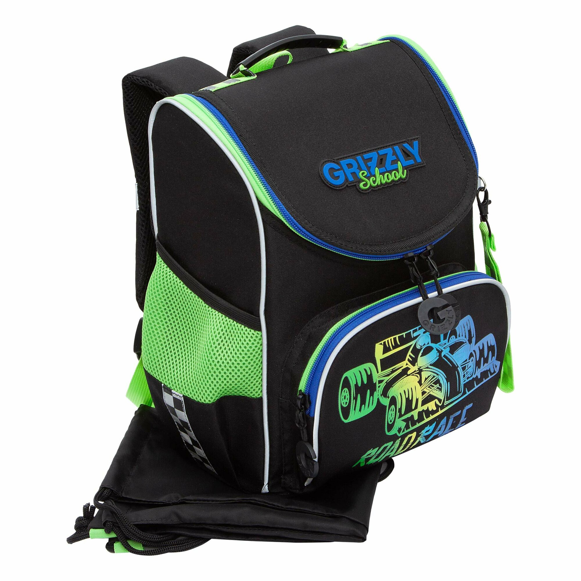 Ранец GRIZZLY анатомическая спинка, с мешком для обуви, для мальчиков, ROAD RACE, 33х25х13 см, RAm-485-2/1