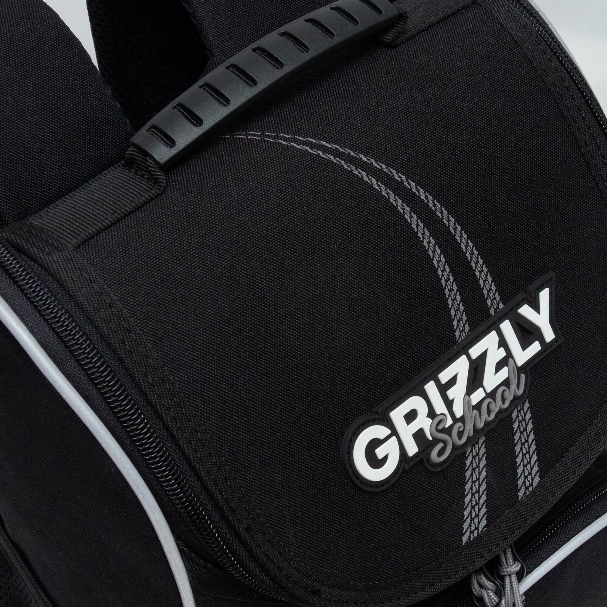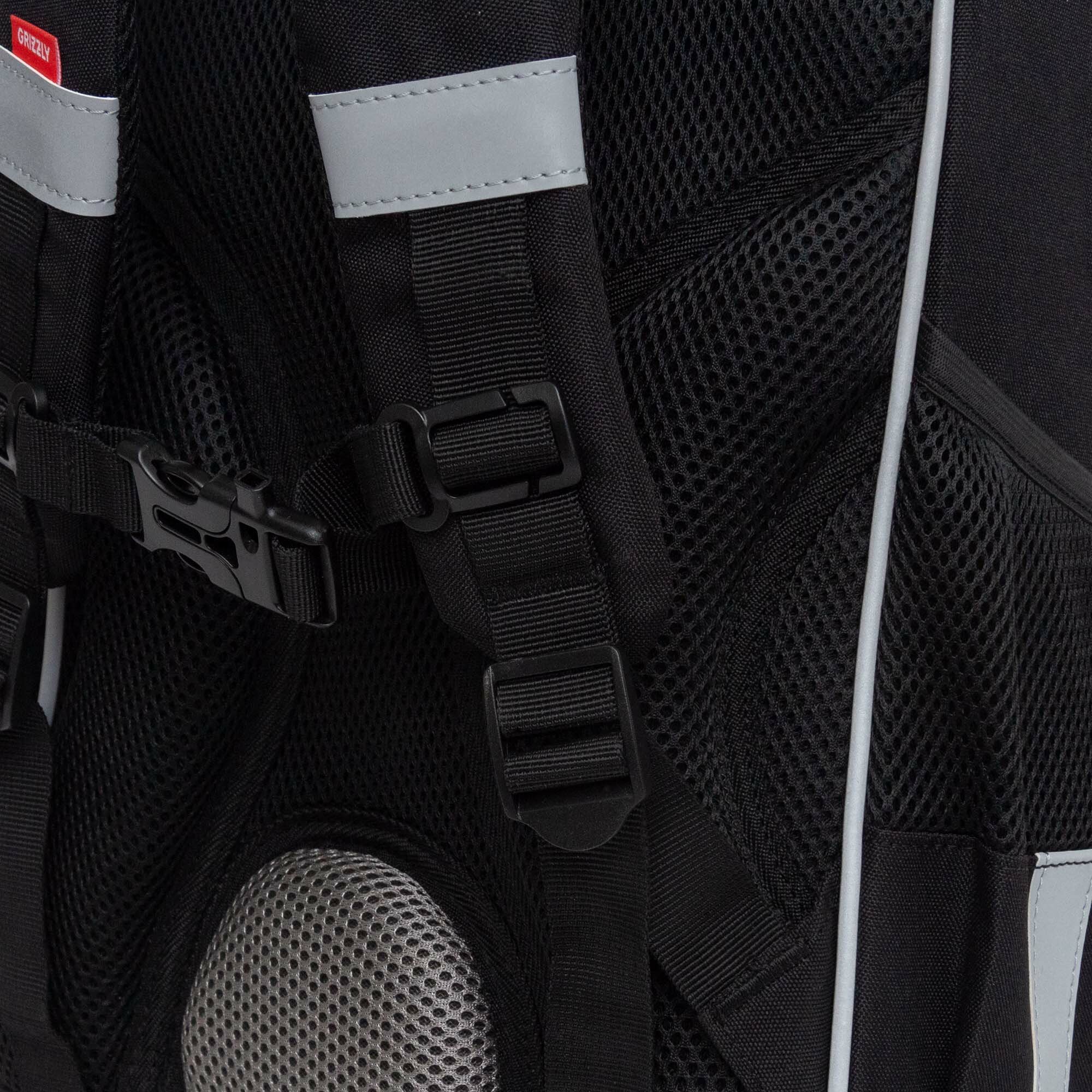 Школьный ранец с ортопедической спинкой GRIZZLY RAm-485-2/1 черный с мешком для обуви, грудная стяжка, 742 грамм, 33x25x13см