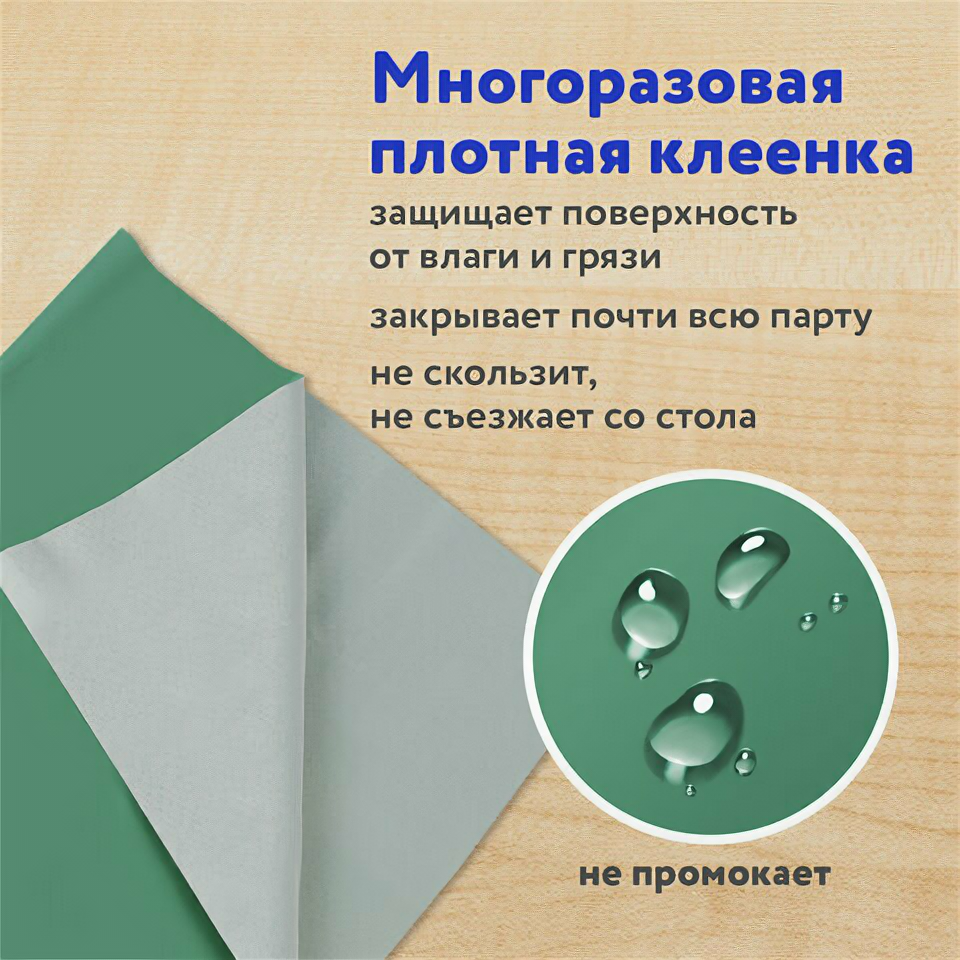 Набор для уроков труда пифагор: клеёнка ПВХ зеленая 69х40 см нарукавники красные, 2 шт интересное: