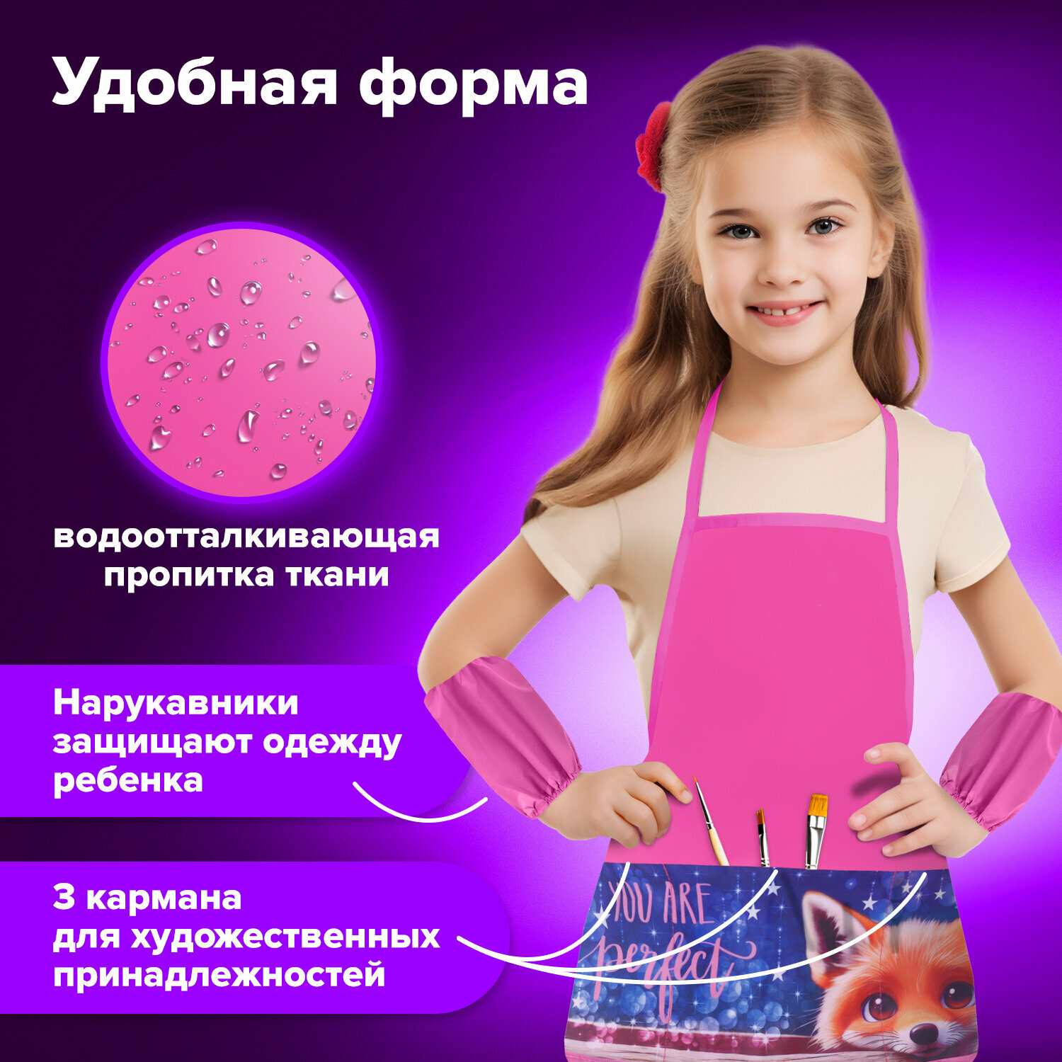 Накидка фартук с нарукавниками для труда BRAUBERG, 3 кармана, 46x54 см, "Cute fox", 272445, в комплекте 1шт интересное: