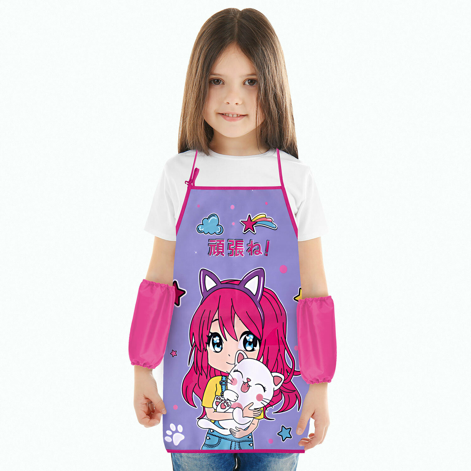 Купить Накидка фартук с нарукавниками для труда юнландия, 46х54 см, "Anime hugs", 272468, в комплекте 1шт