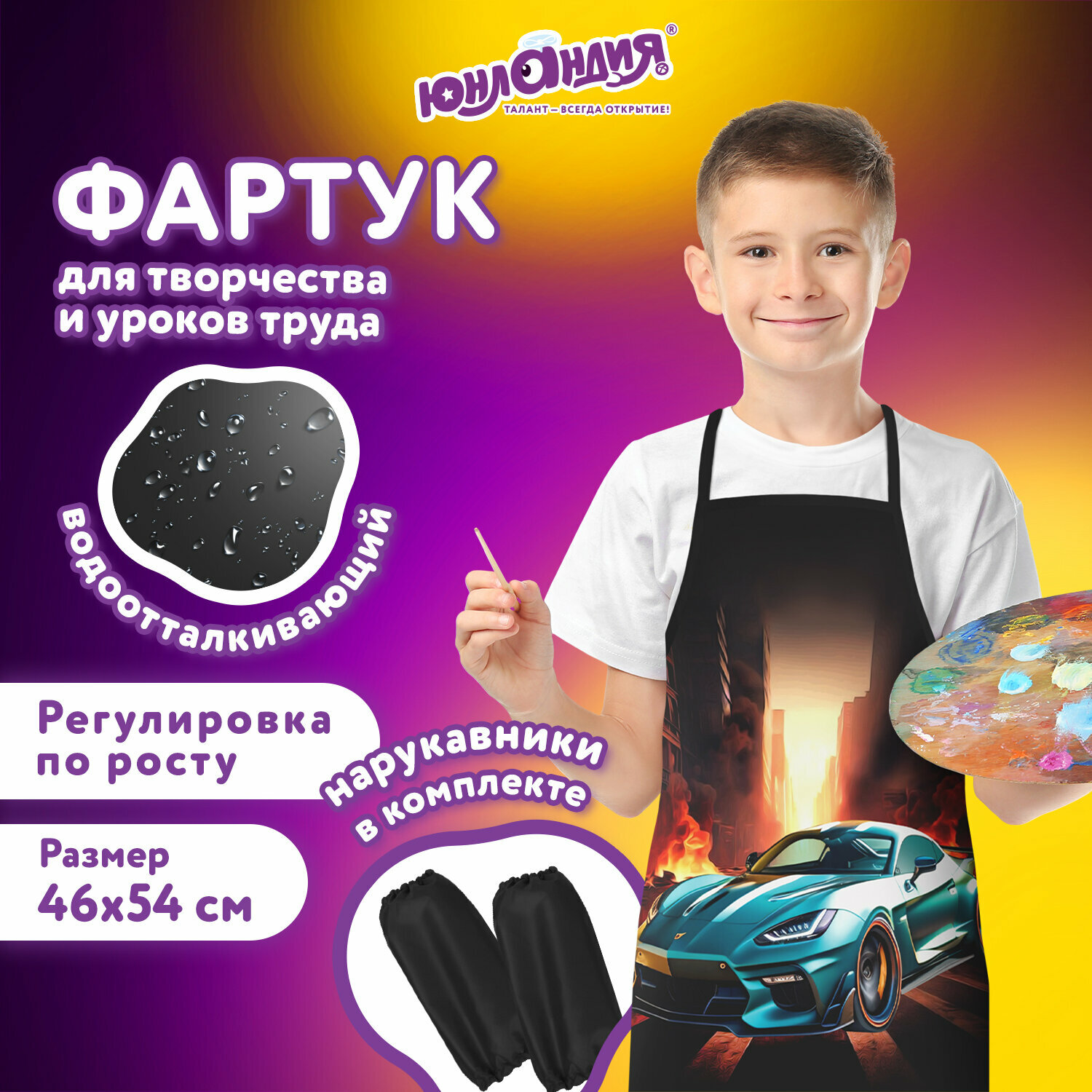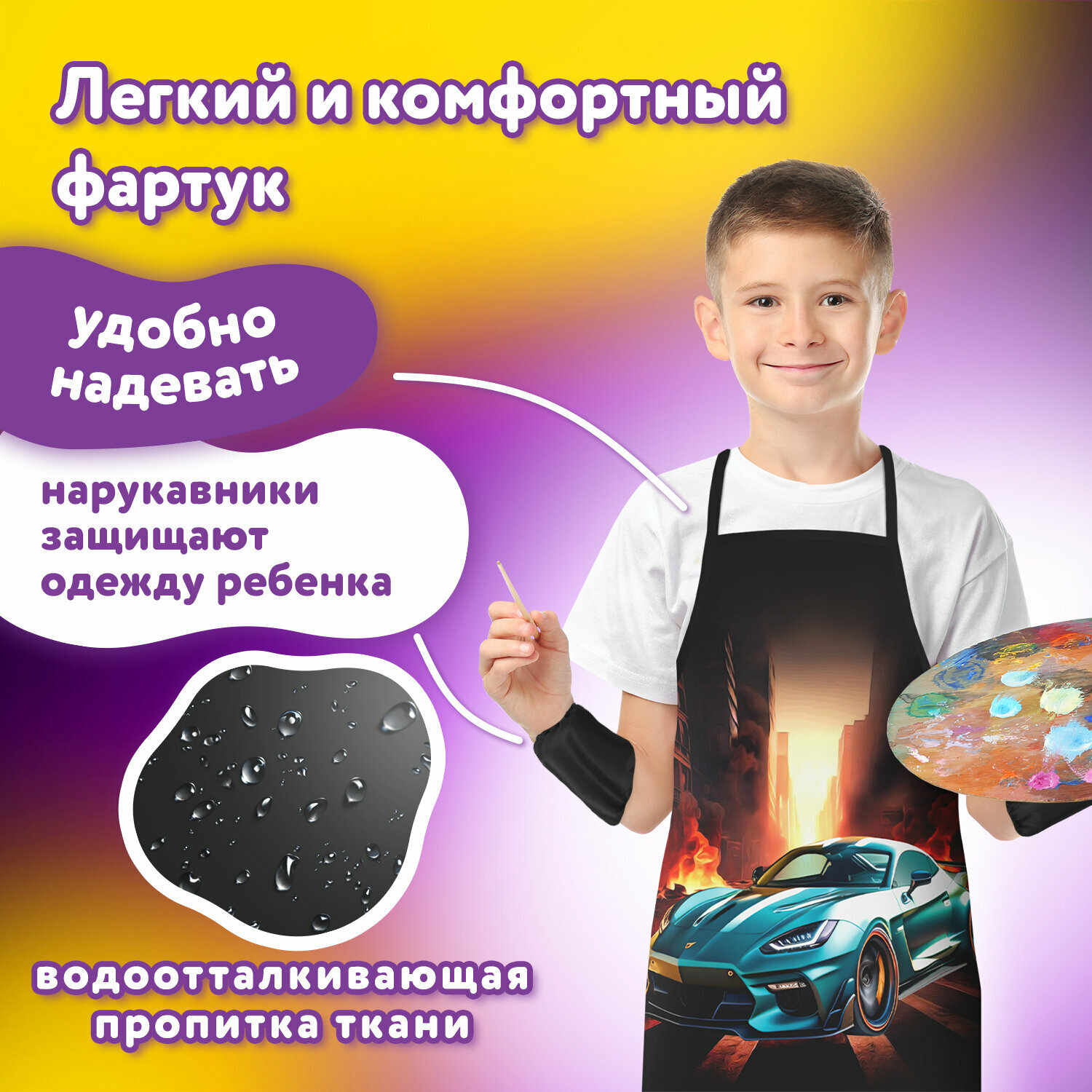 Накидка фартук с нарукавниками для труда юнландия, 46х54 см, "Fire car", 272465, в комплекте 1шт интересное: