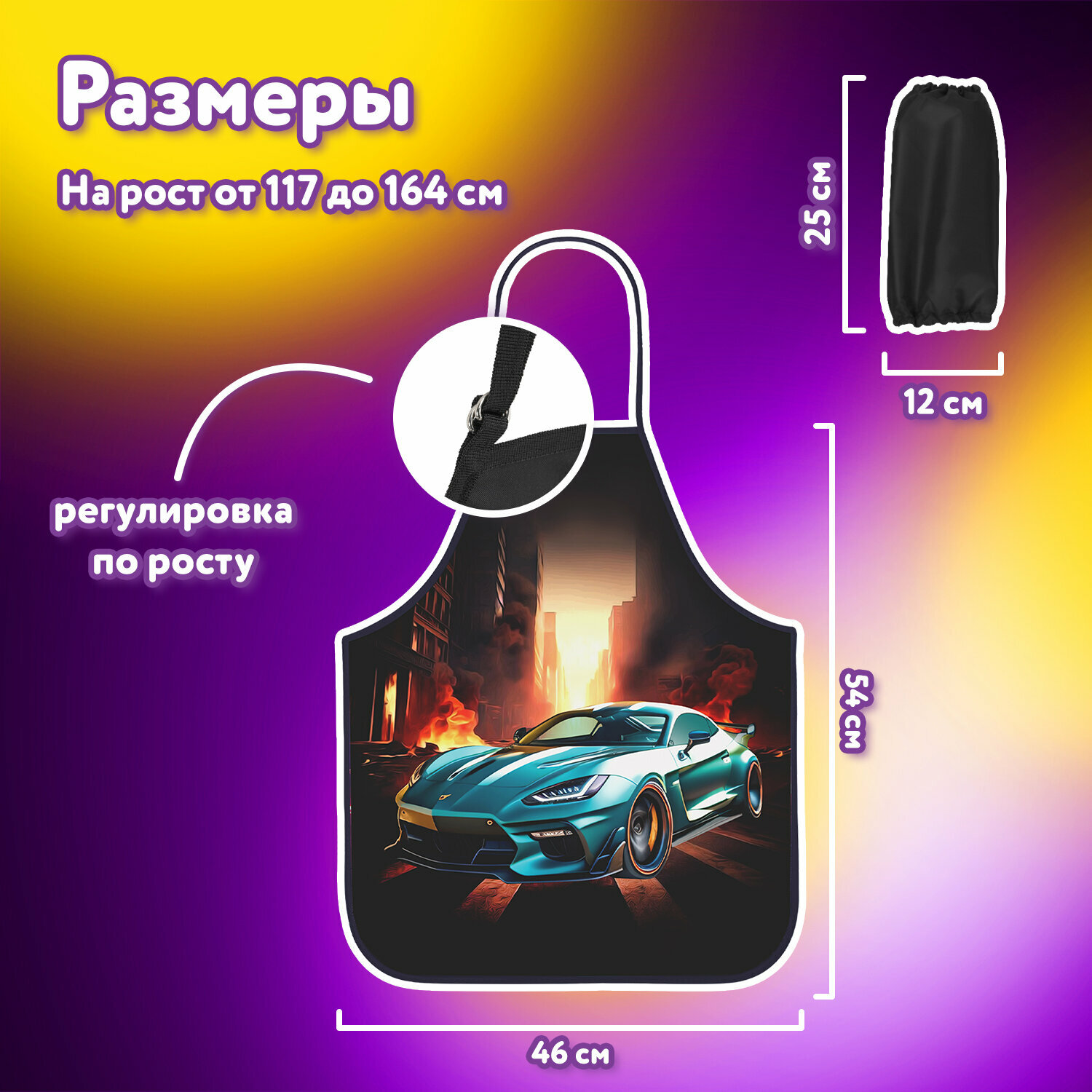 Купить Накидка фартук с нарукавниками для труда юнландия, 46х54 см, "Fire car", 272465, в комплекте 1шт