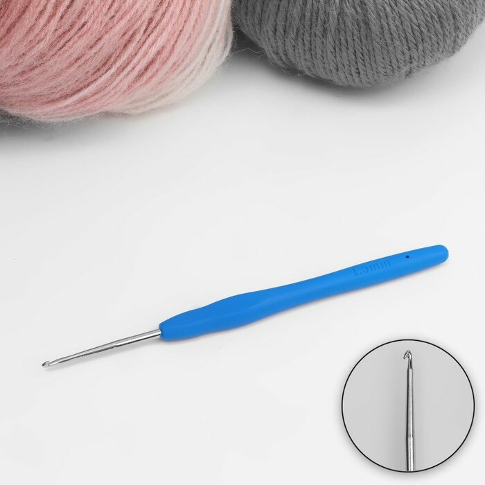 Купить Крючок для вязания, с силиконовой ручкой, d = 1,5 мм, 13 см,цвет синий
