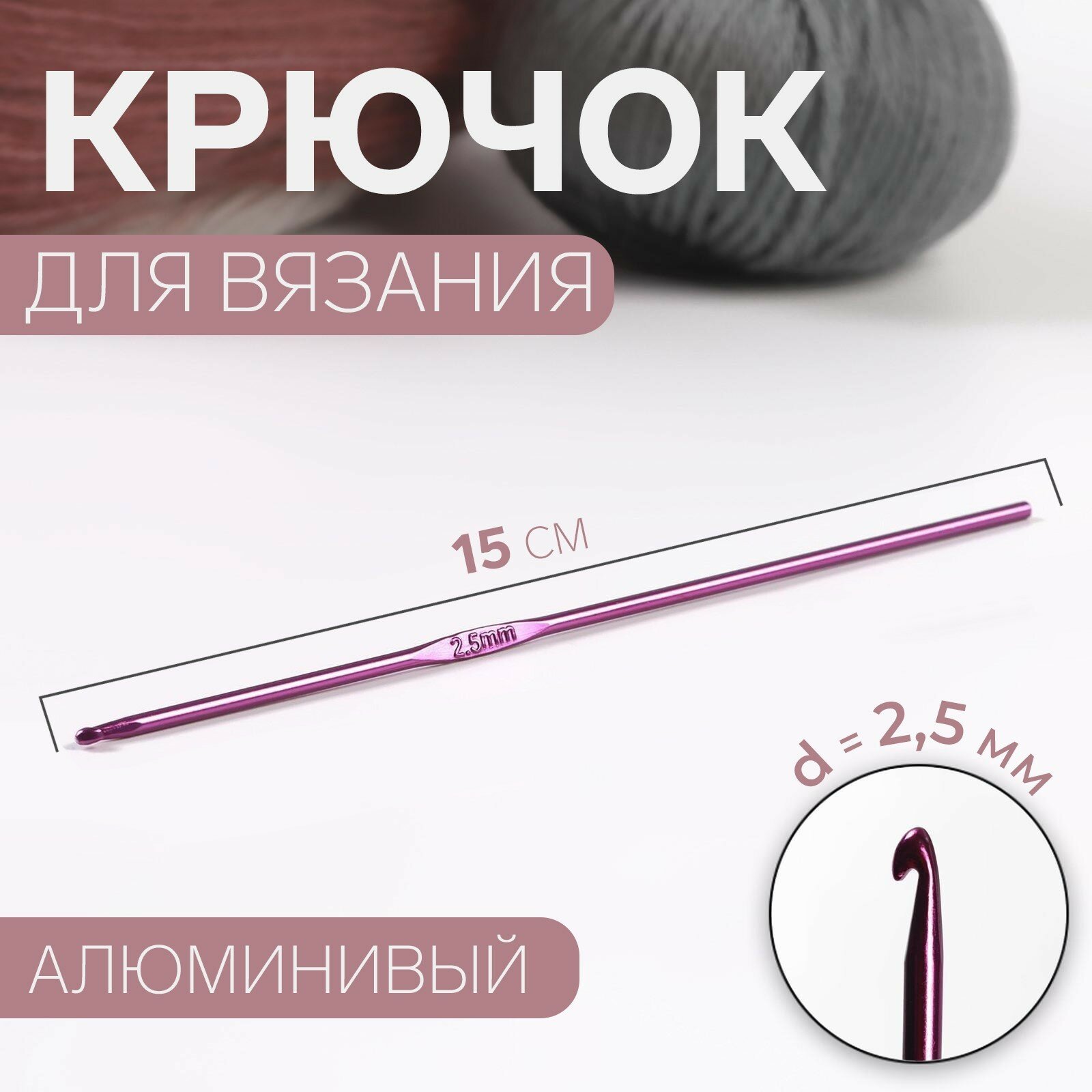 Купить Крючок для вязания, d = 2,5 мм, 15 см, цвет микс 10шт.
