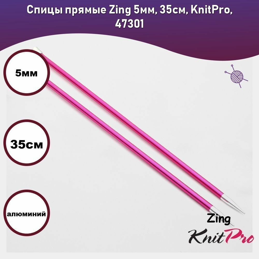 Спицы прямые Zing 5мм/35см, алюминий, 2шт в упаковке, KnitPro, 47301