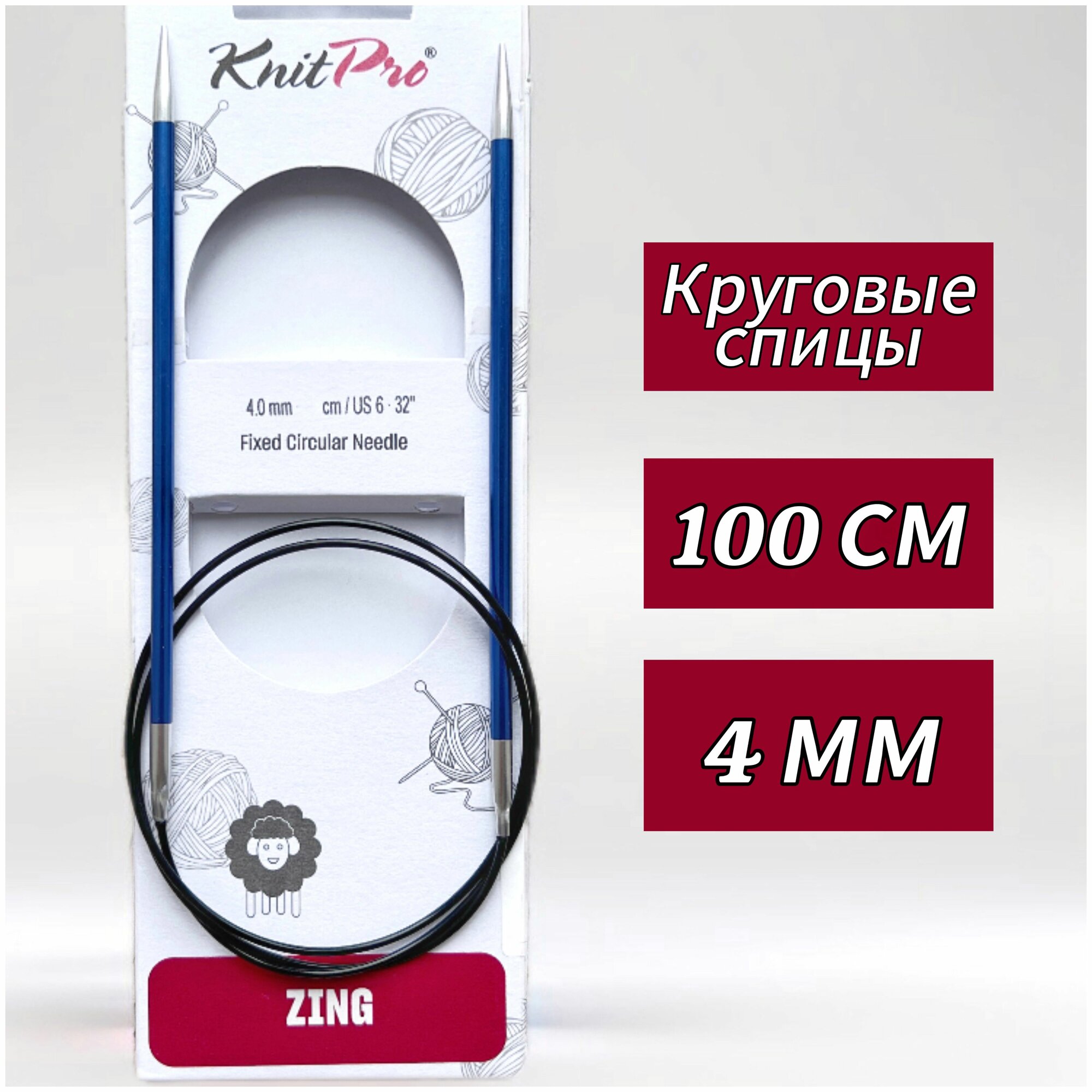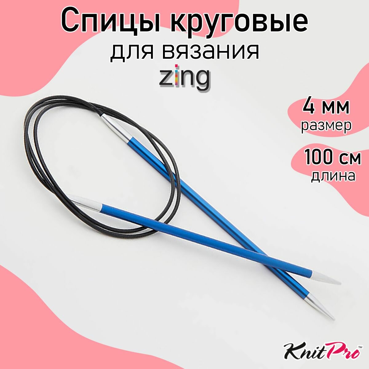 Спицы круговые Knit Pro Zing, 4 мм, 100 см, алюминий (KNPR.47159)