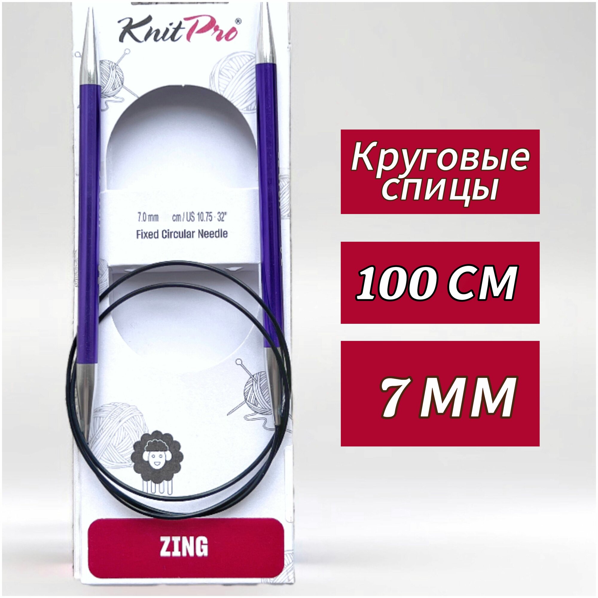 Спицы для вязания Knit Pro круговые Zing 100см, 7,0мм, арт.47165 шт