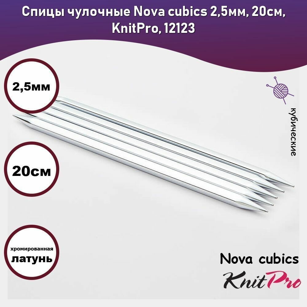 12123 Knit Pro Спицы чулочные для вязания Nova cubics 2,5мм/20см, никелированная латунь, серебристый, 5шт