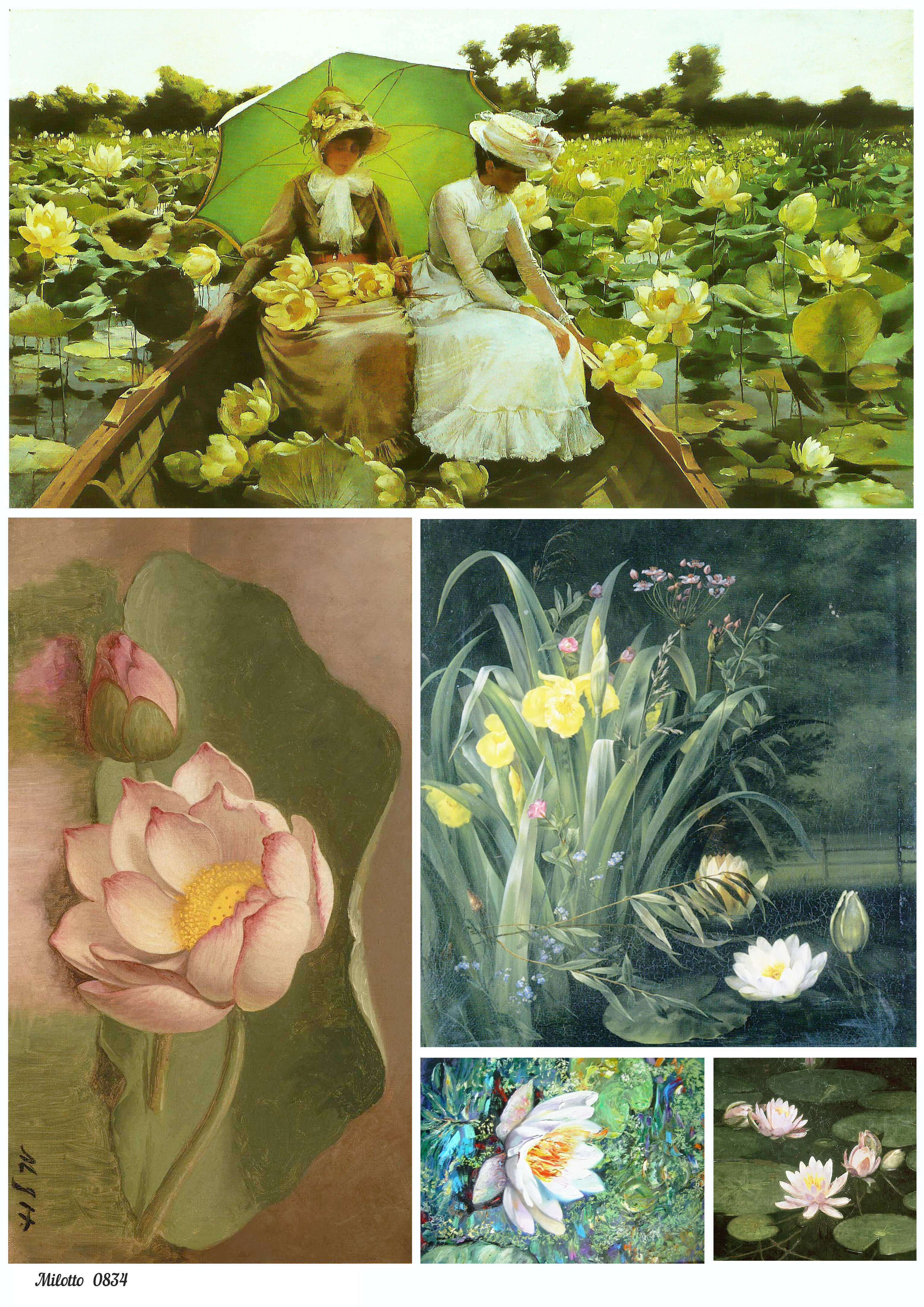 Рисовая бумага для декупажа карта А4 салфетка 0834 цветы кувшинки лотос винтаж крафт DIY интересное: