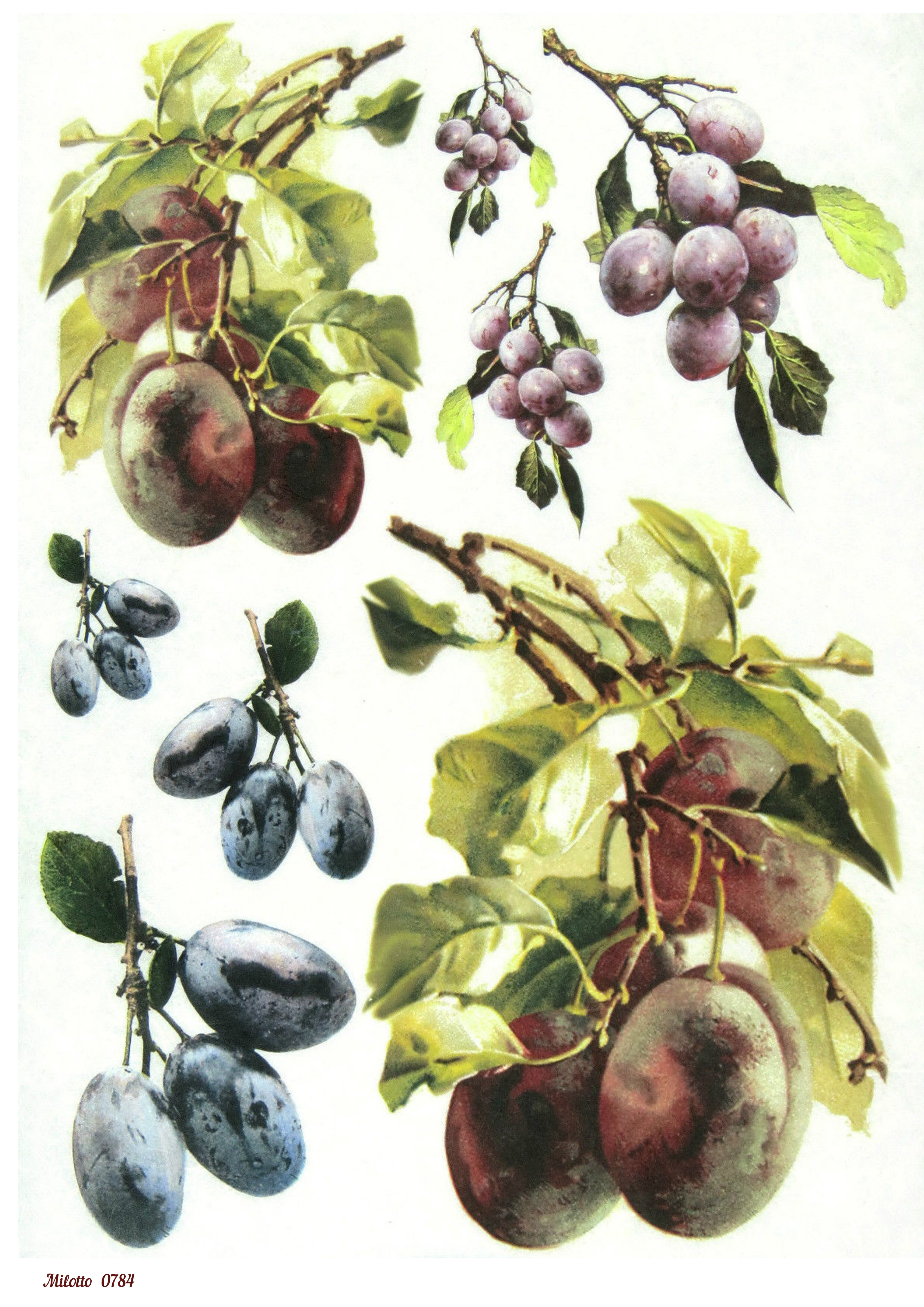 Купить Декупажная рисовая карта А4 салфетка 0784 фрукты ягоды сливы ветка винтаж крафт DIY Milotto