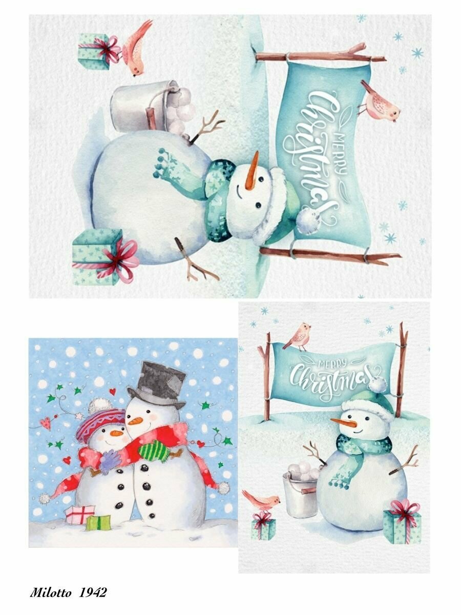 Купить Декупажная карта А4 рисовая новогодняя снеговики 1942