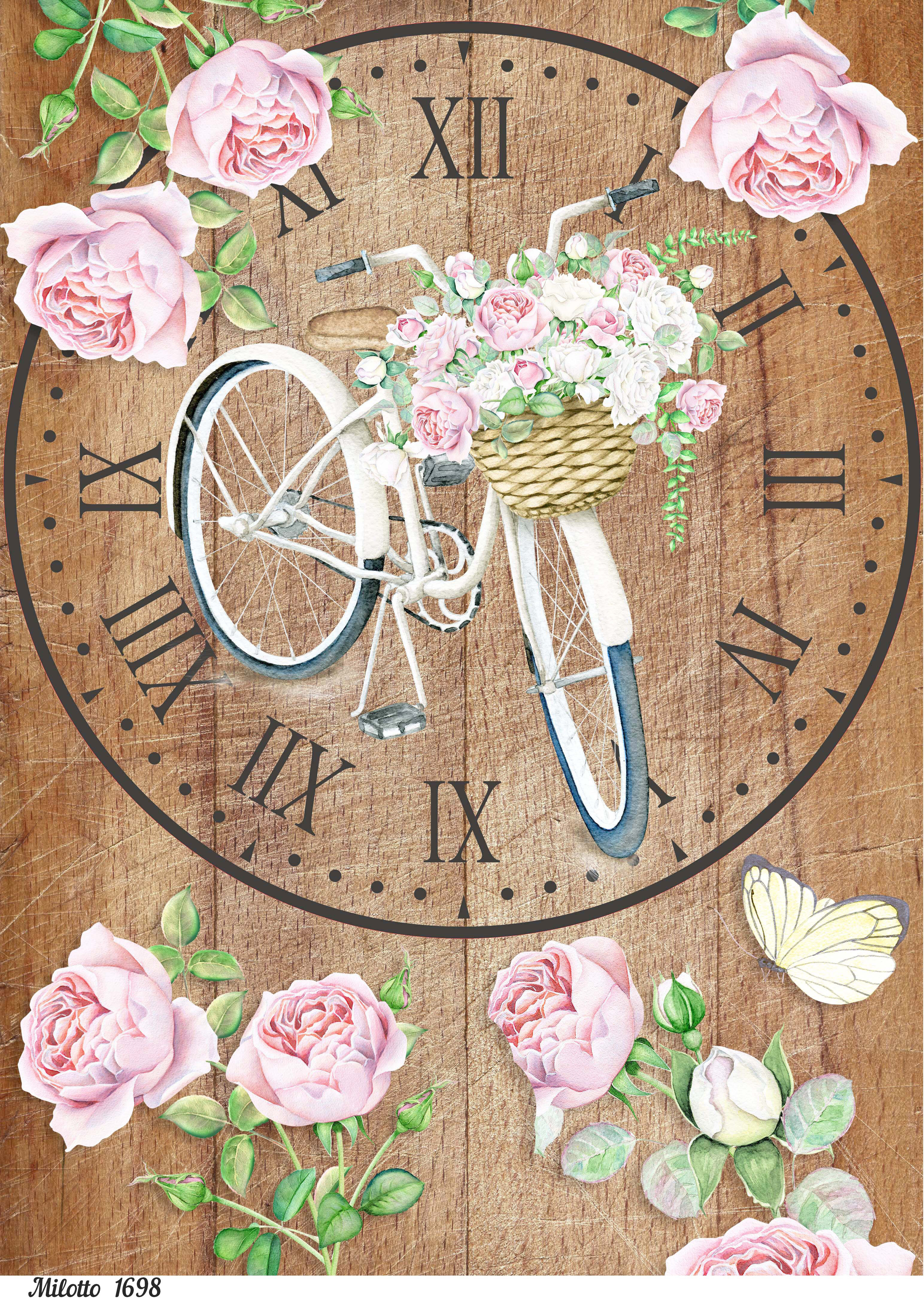 Купить Рисовая декупажная карта А4 салфетка 1698 циферблат основа для часов велосипед цветы винтаж крафт DIY Milotto