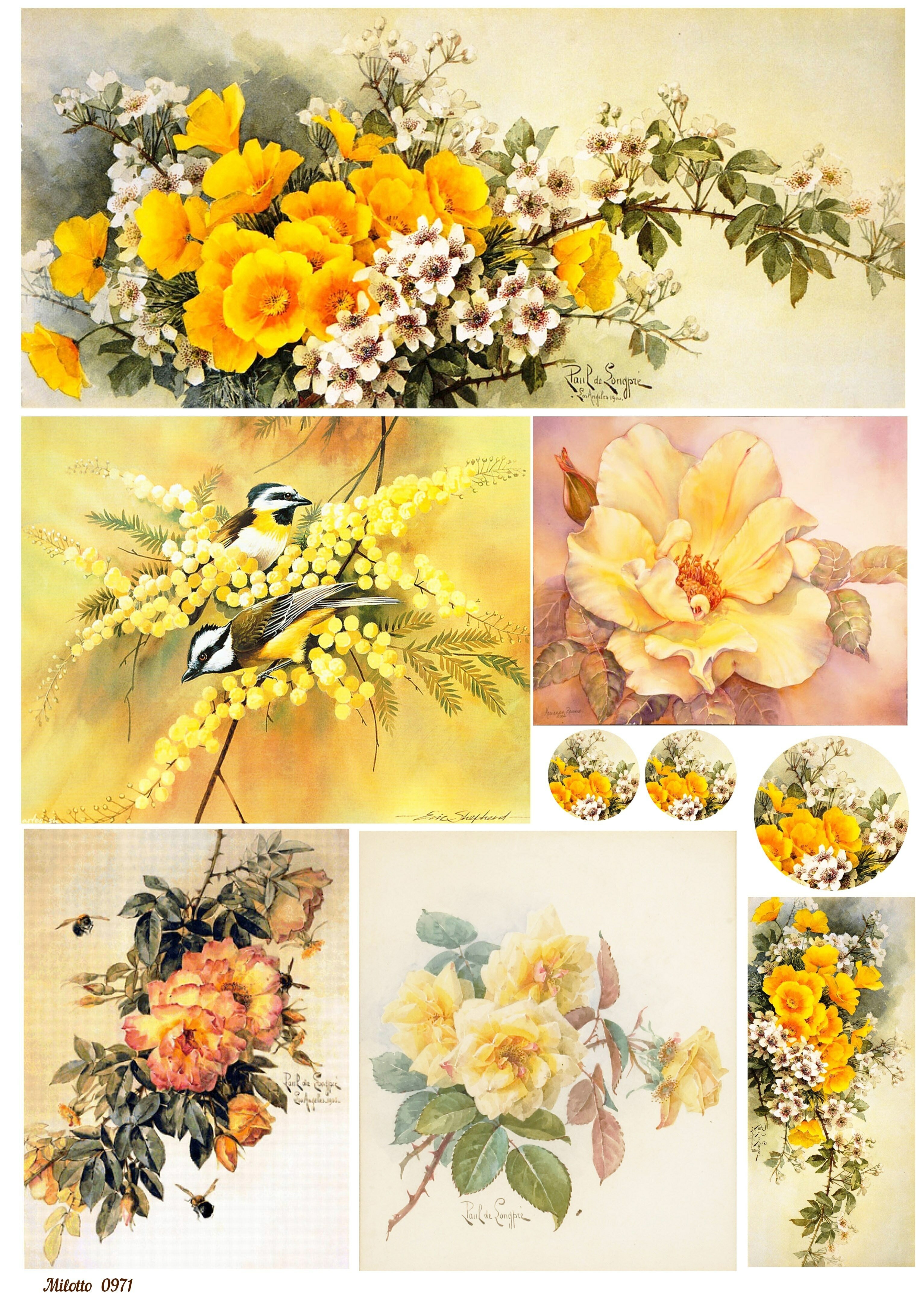 Декупажная карта А4 рисовая бумага тонкая жёлтые цветы интересное: