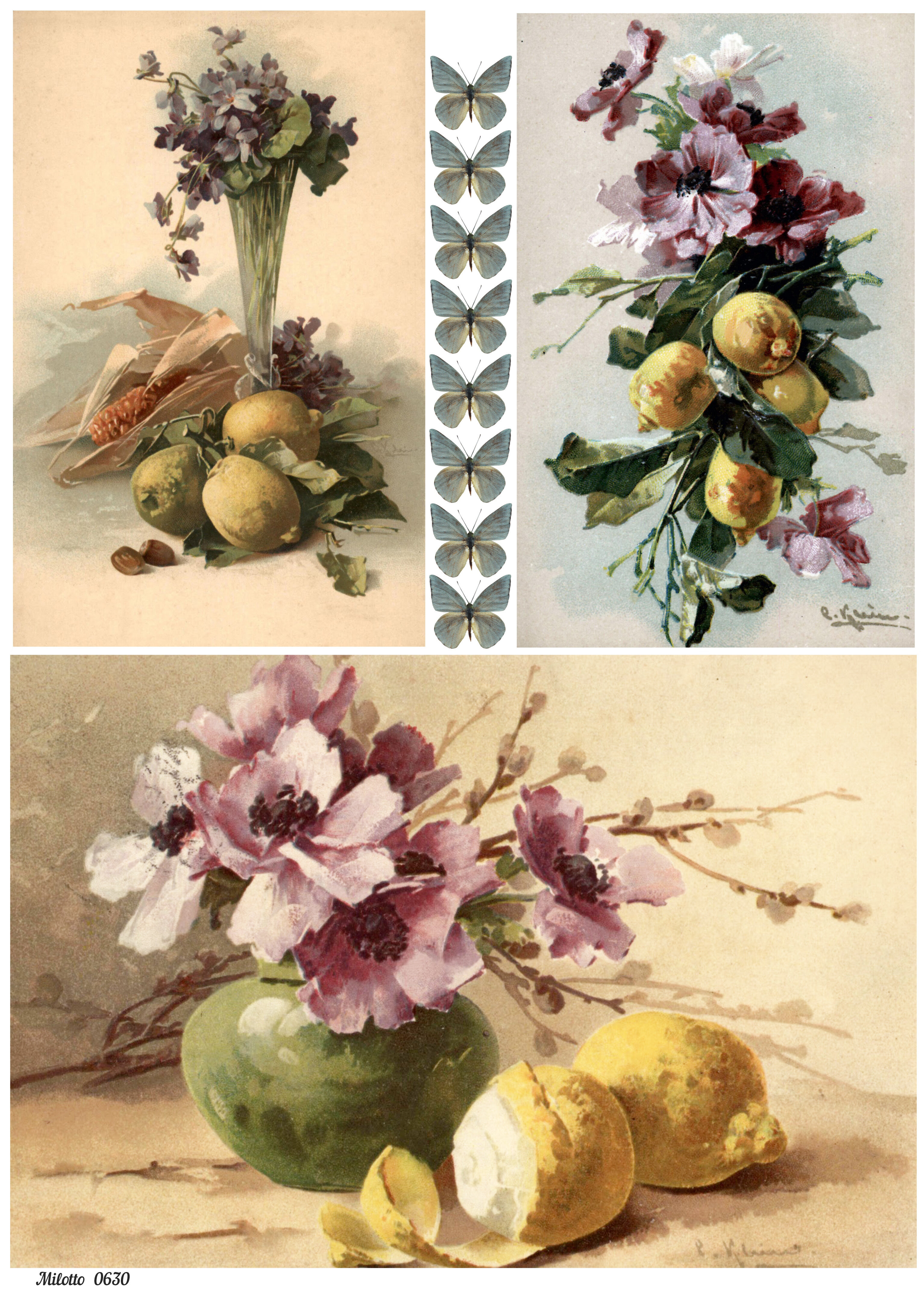 Декупажная карта А4 рисовая бумага тонкая натюрморт с цветами и фруктами интересное:
