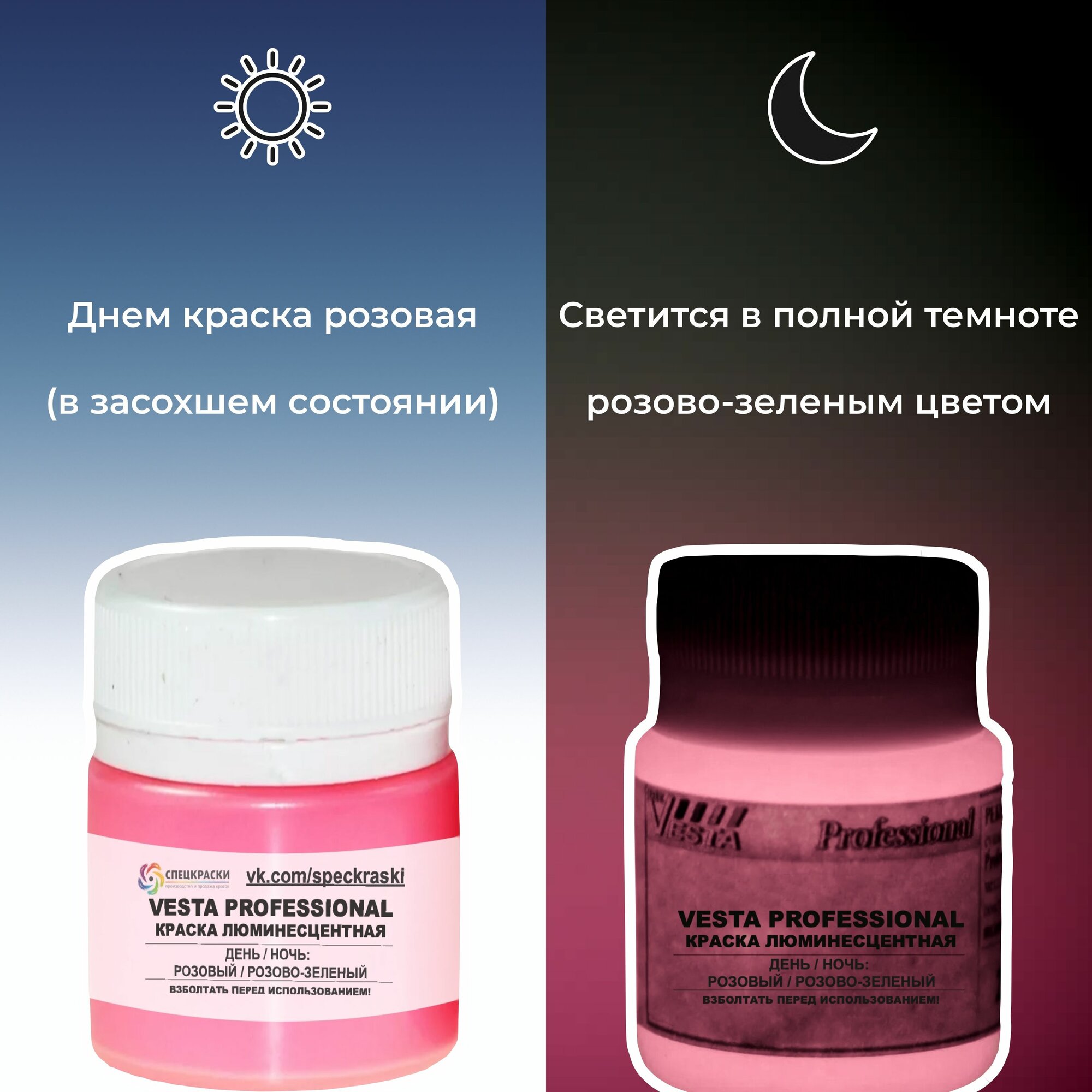 СохранитьКраска люминесцентная "VESTA PROFESSIONAL" розовая / розово-зеленая (день / ночь) - 30 мл интересное: