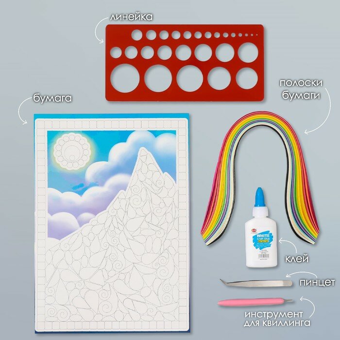 Набор для квиллинга 170 полосок с инструментами "Восход солнца в горах" 25х33,7 см интересное:
