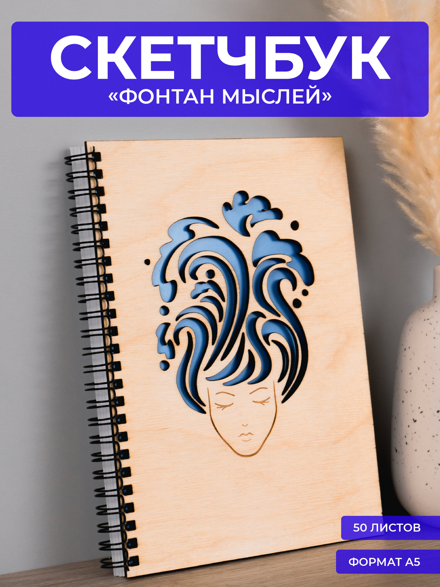 Скетчбук в твердой обложке «Фонтан мыслей» интересное: