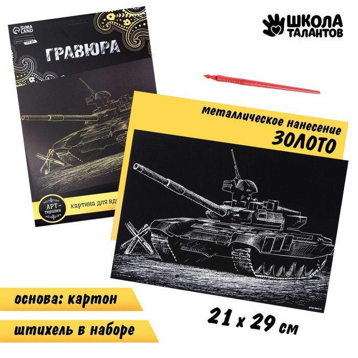 Гравюра «Танк» с металлическим эффектом золота А4(2 шт.) интересное: