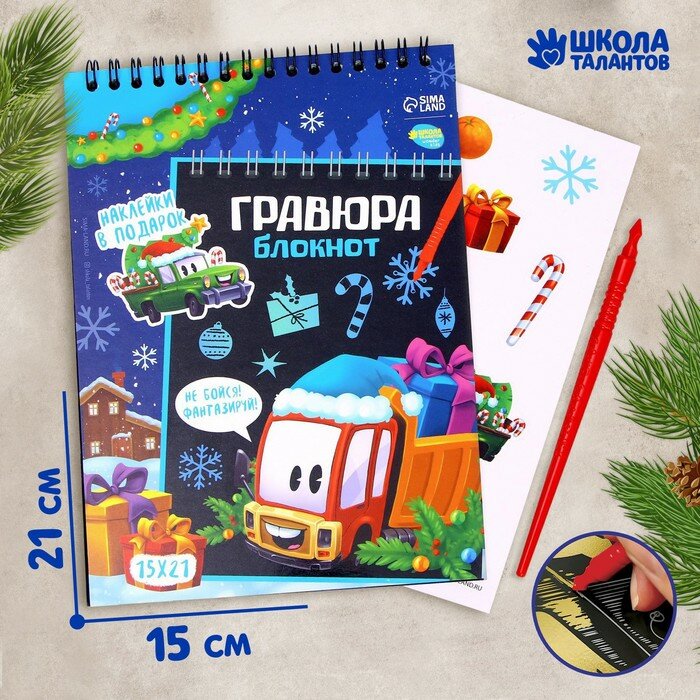 Блокнот - гравюра на новый год «Транспорт», 10 листов, лист наклеек интересное: