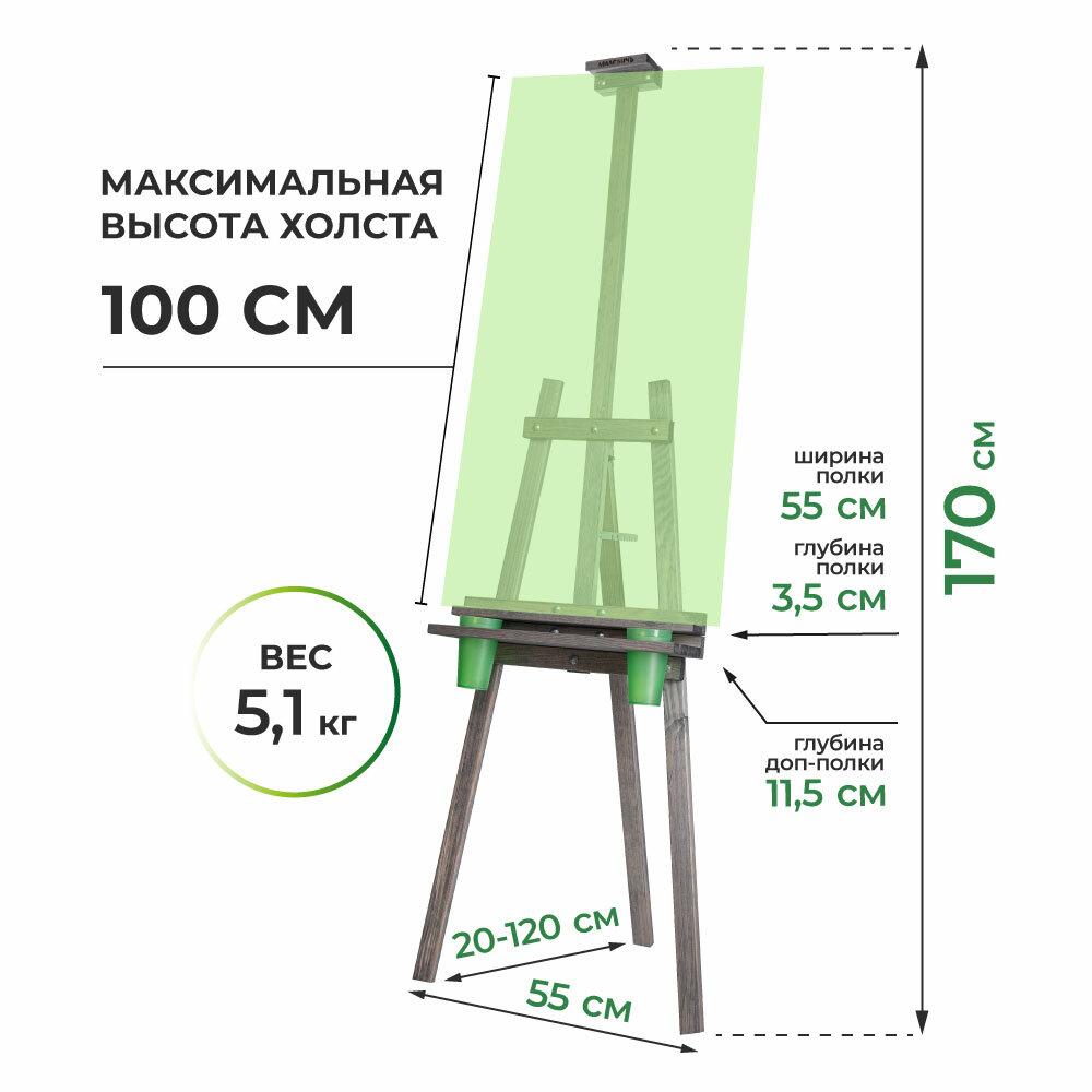 | Дополнительная информация | глубина от 20 до 120 см; ширина полки 55 см, глубина полки 3,5 см; оснащен дополнительной широкой полкой для инструментов с отверстиями для стаканов с водой или кистей (стаканы входят в комплект) |