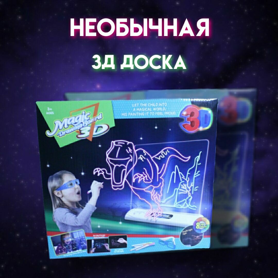 Доска для рисования 3Д Magic drawing board 3D динозавры интересное: