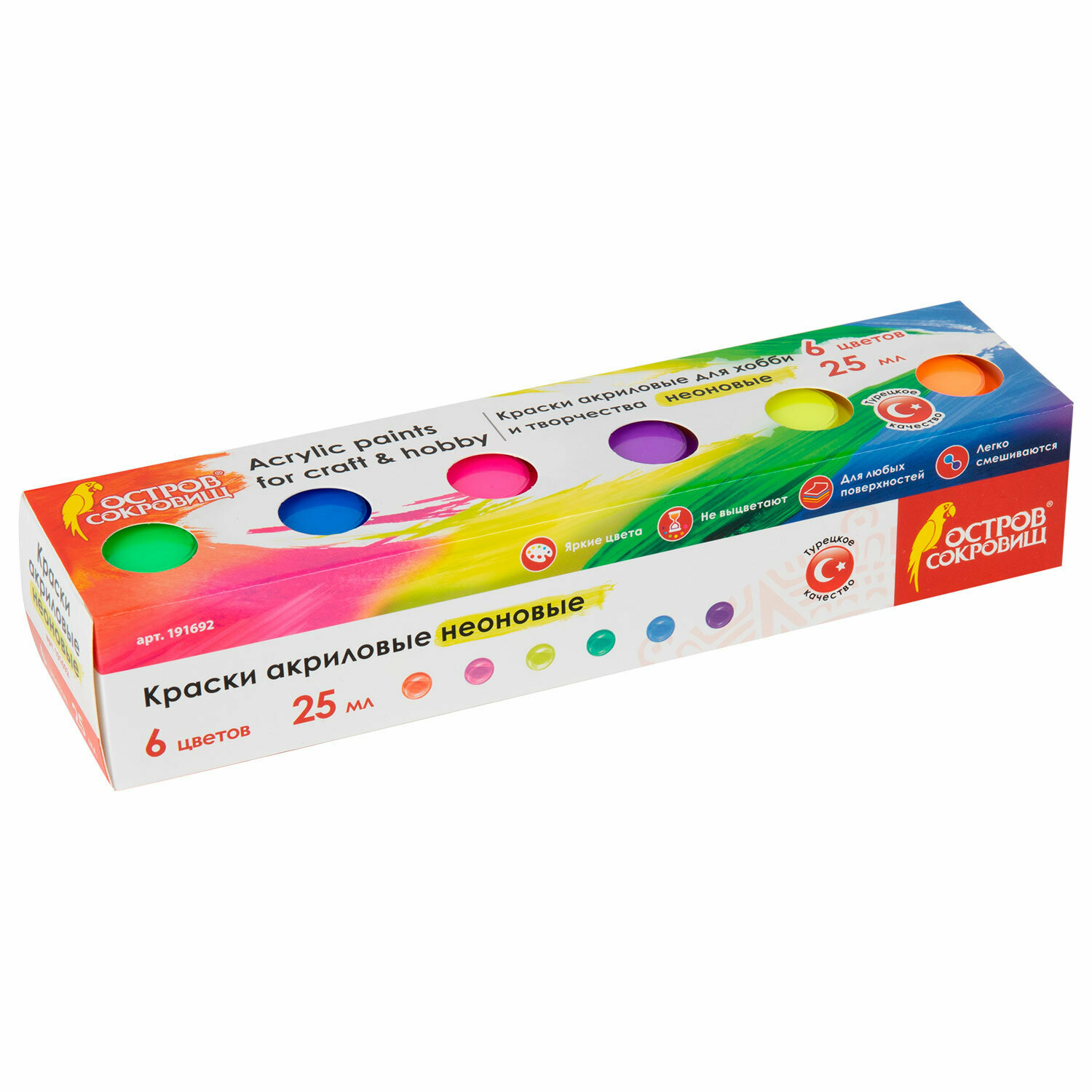 Купить Краски акриловые неон для рисования и хобби остров сокровищ 6 цветов по 25 мл, 191692