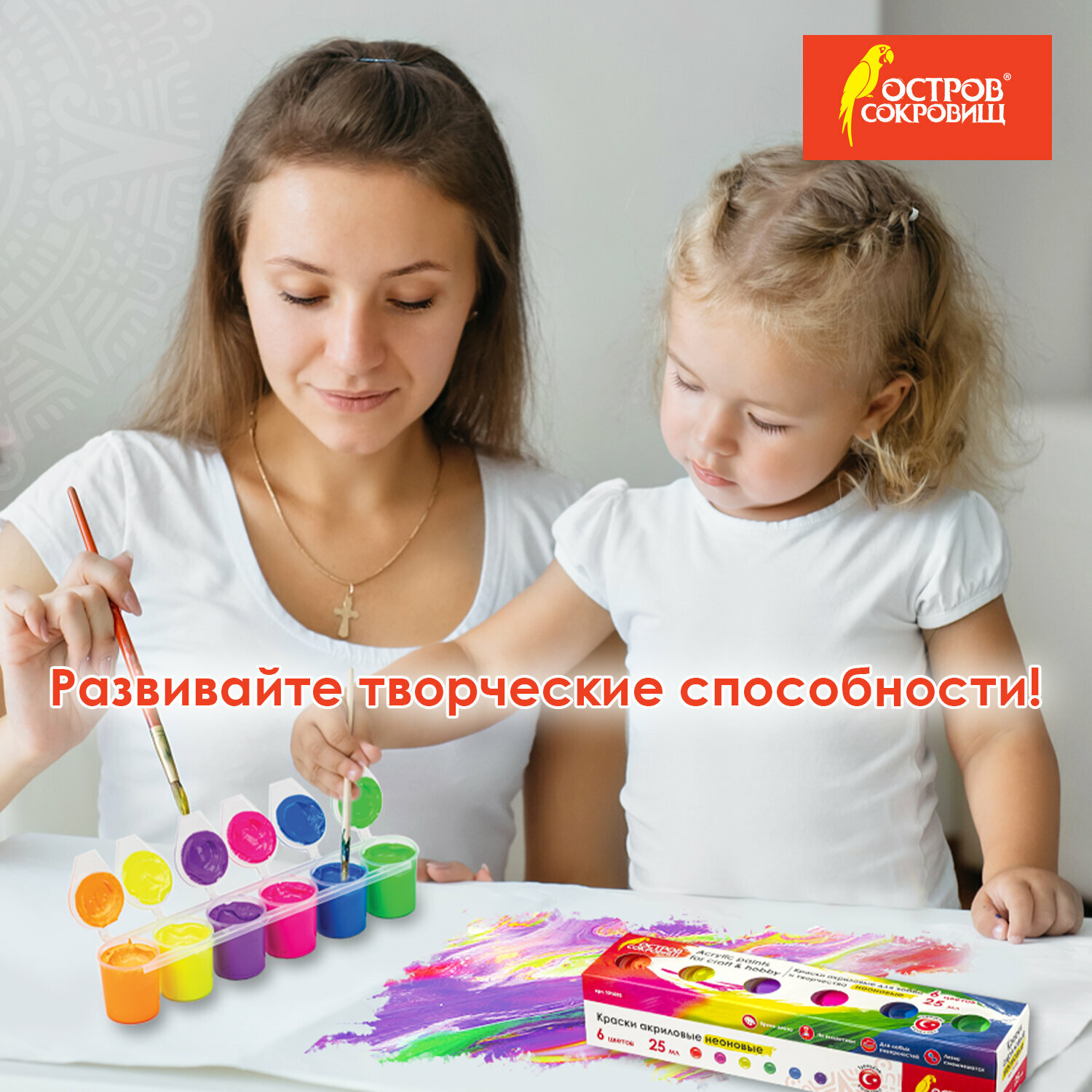 СохранитьКраски акриловые неон для рисования и хобби остров сокровищ 6 цветов по 25 мл, 191692 интересное: