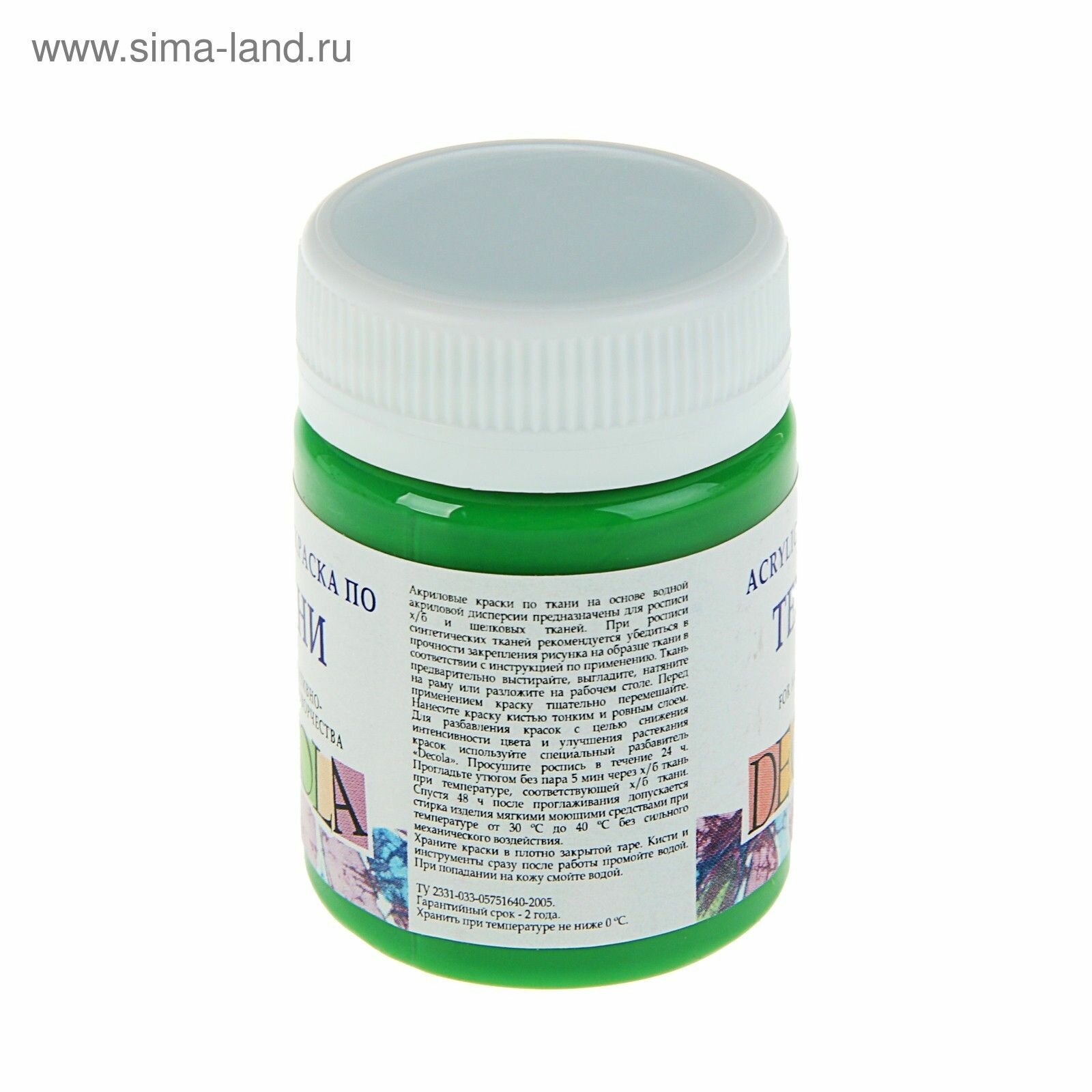 Краска акриловая по ткани Невская палитра DECOLA, 50 мл, изумрудная