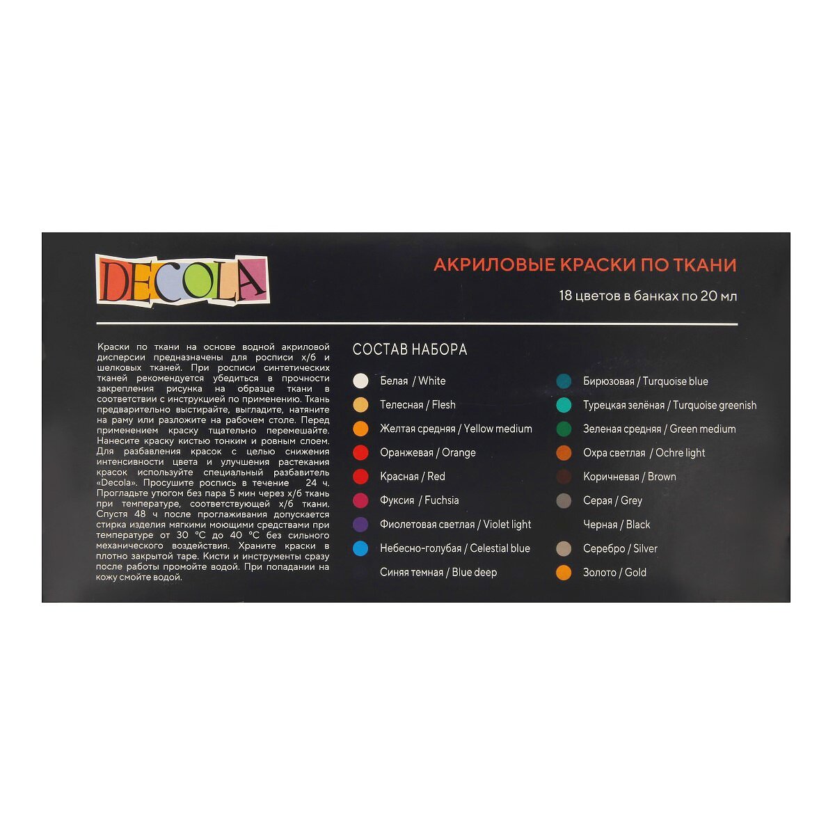Купить Краски акриловые для рисования по ткани Невская палитра DECOLA, 18 цветов по 20 мл