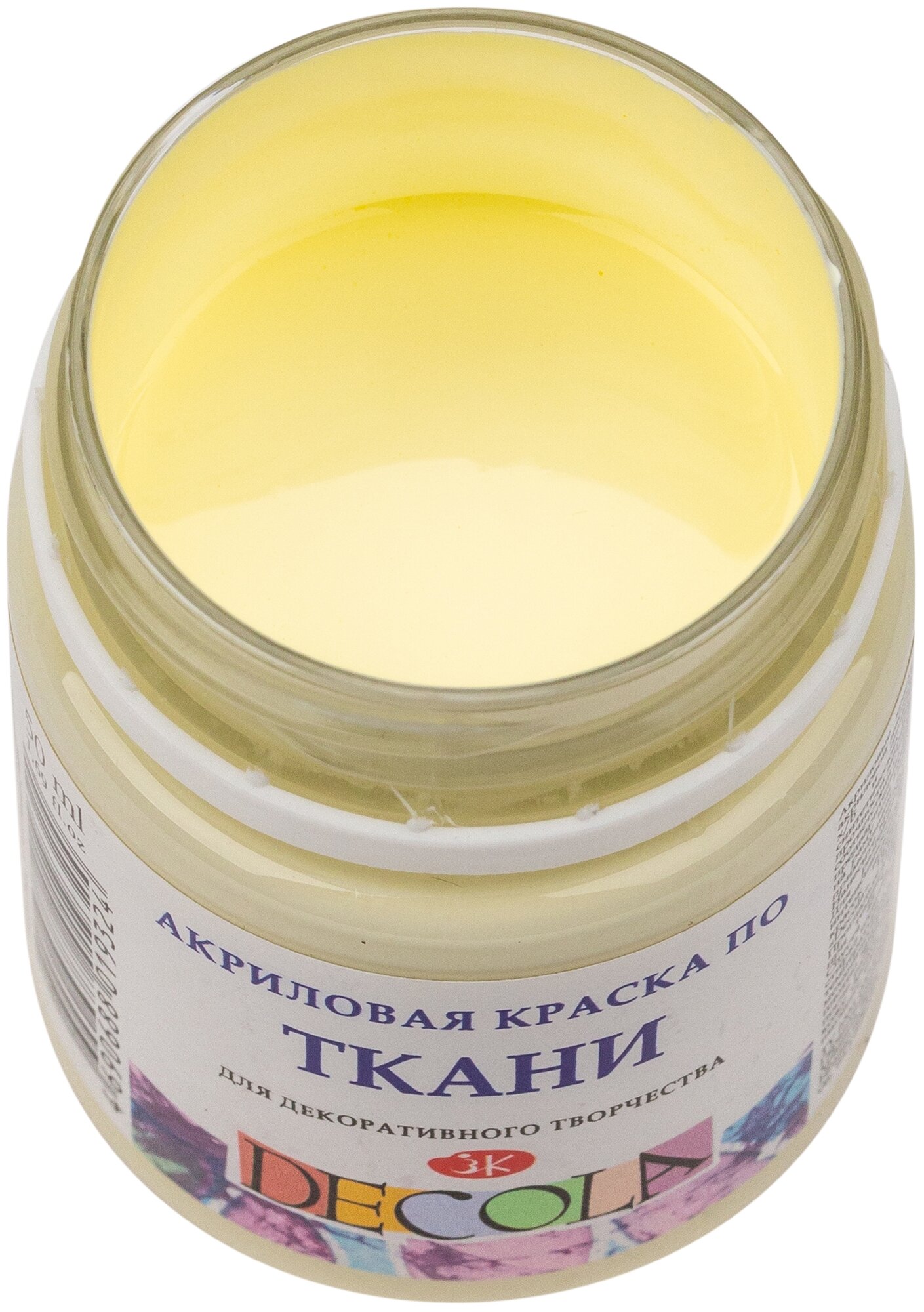 Краска по ткани, банка 50 мл, ЗХК Decola, Fluo флуоресцентная Лимонная, акриловая на водной основе, 5128214