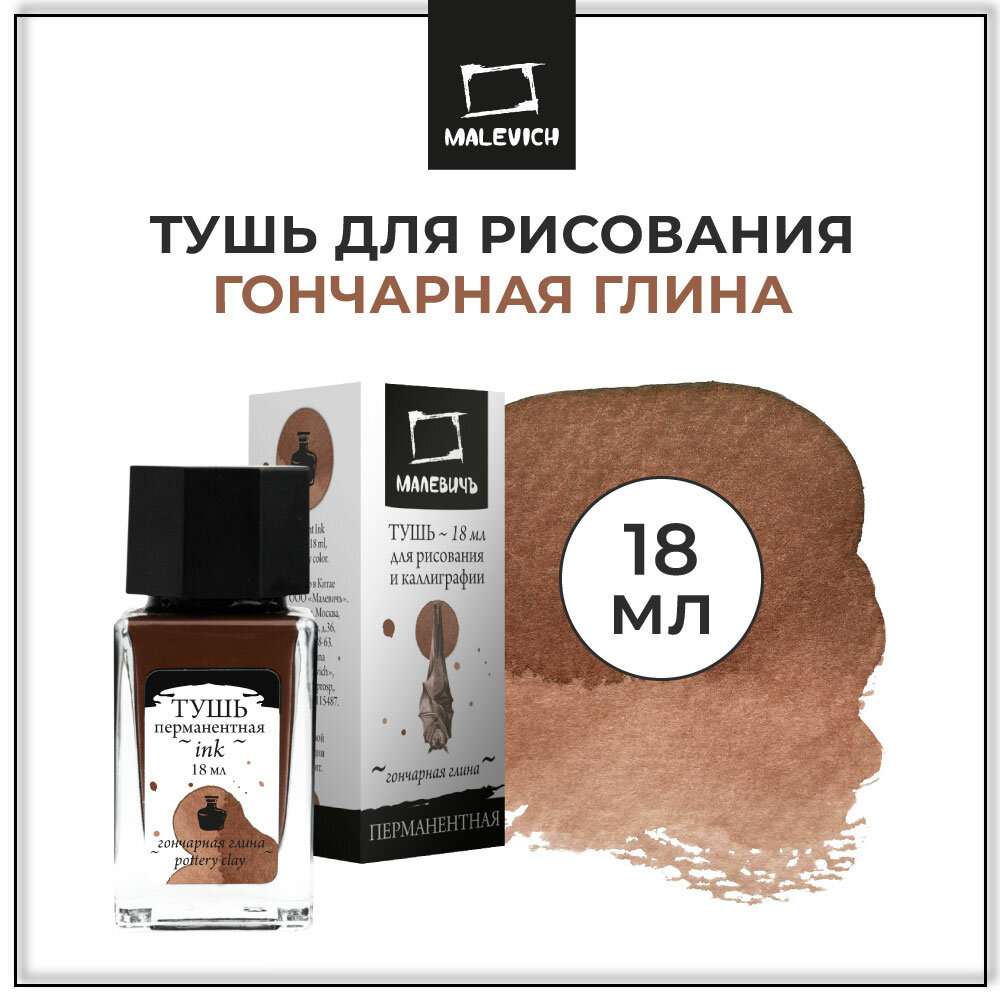 Тушь для рисования и каллиграфии Малевичъ, цветная перманентная, гончарная глина, 18 мл