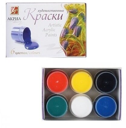 Краски акриловые Луч художественные , 6 цветов по 20 мл, в баночках, 22С 1408-08