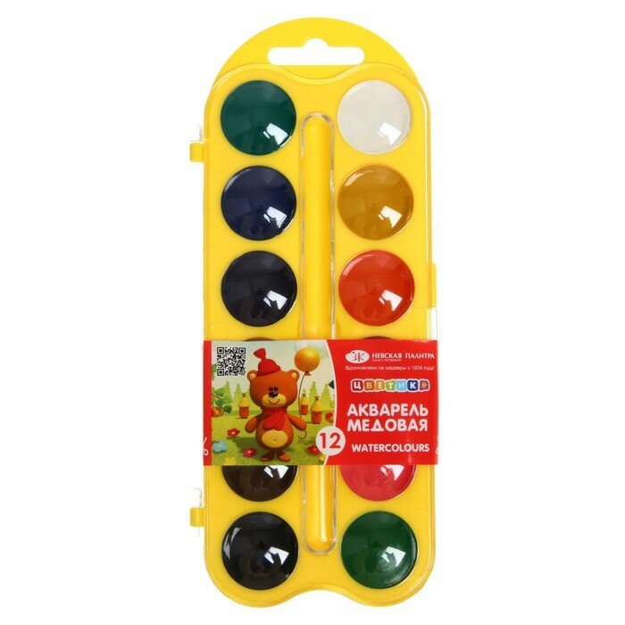 Акварель медовая ЗХК "Цветик", 12 цветов, в пластиковом пенале, без кисти интересное:
