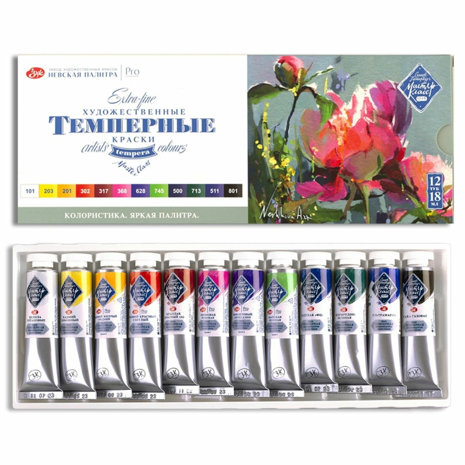 Купить Краски темперные для рисования Невская палитра Мастер-Класс "Колористика. Яркая палитра", 12 цветов по 18 мл