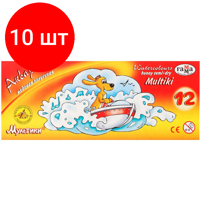 Комплект 10 наб., Краски акварельные Гамма Мультики, медовая, 12 цветов, без кисти, 211048 интересное:
