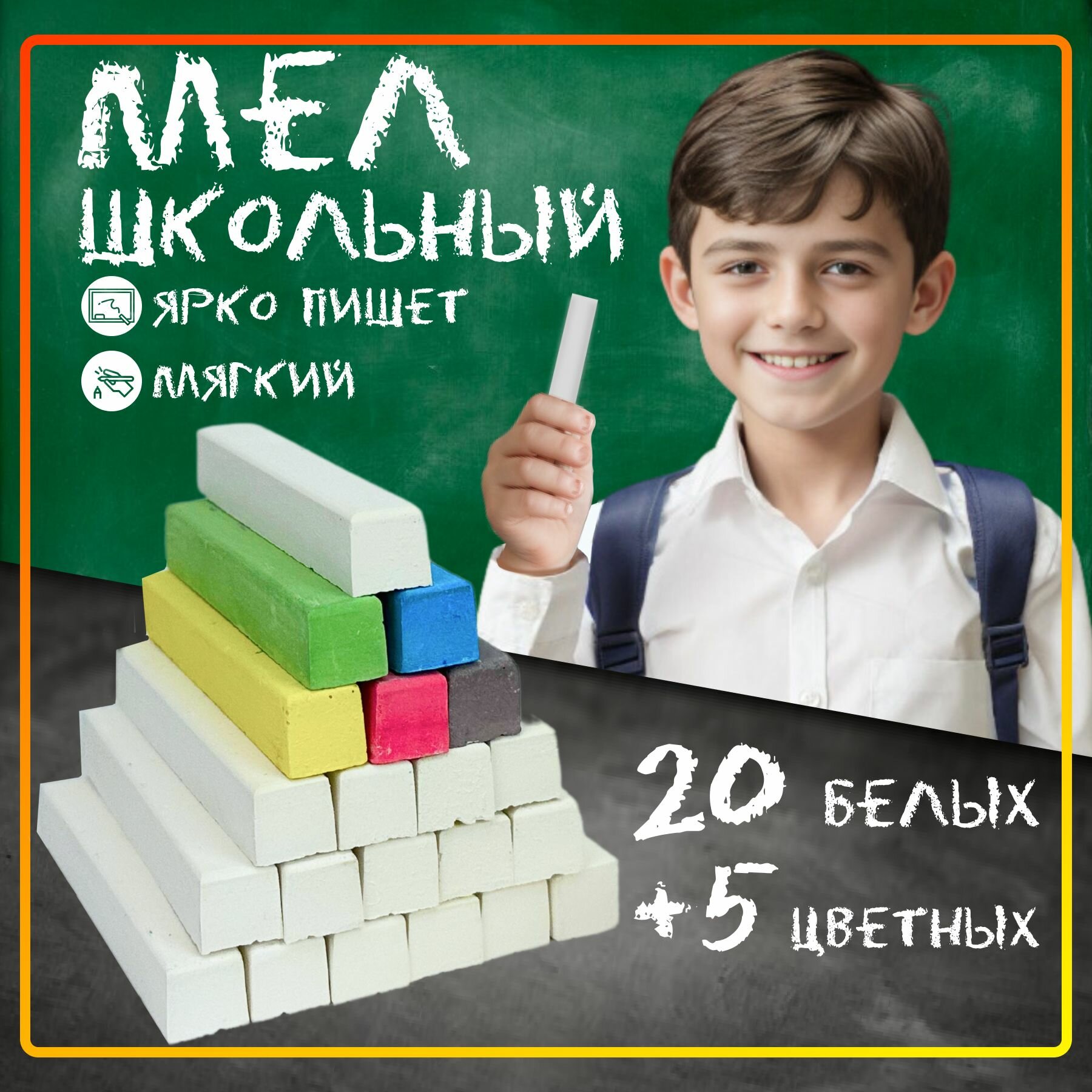 Мелки для школьной доски и асфальта 20 белых и 5 цветных интересное: