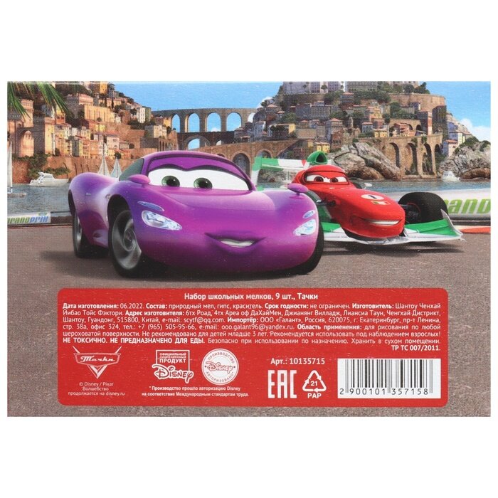Мелки цветные школьные 9шт "Тачки", прямоугольные, 10135715 интересное: