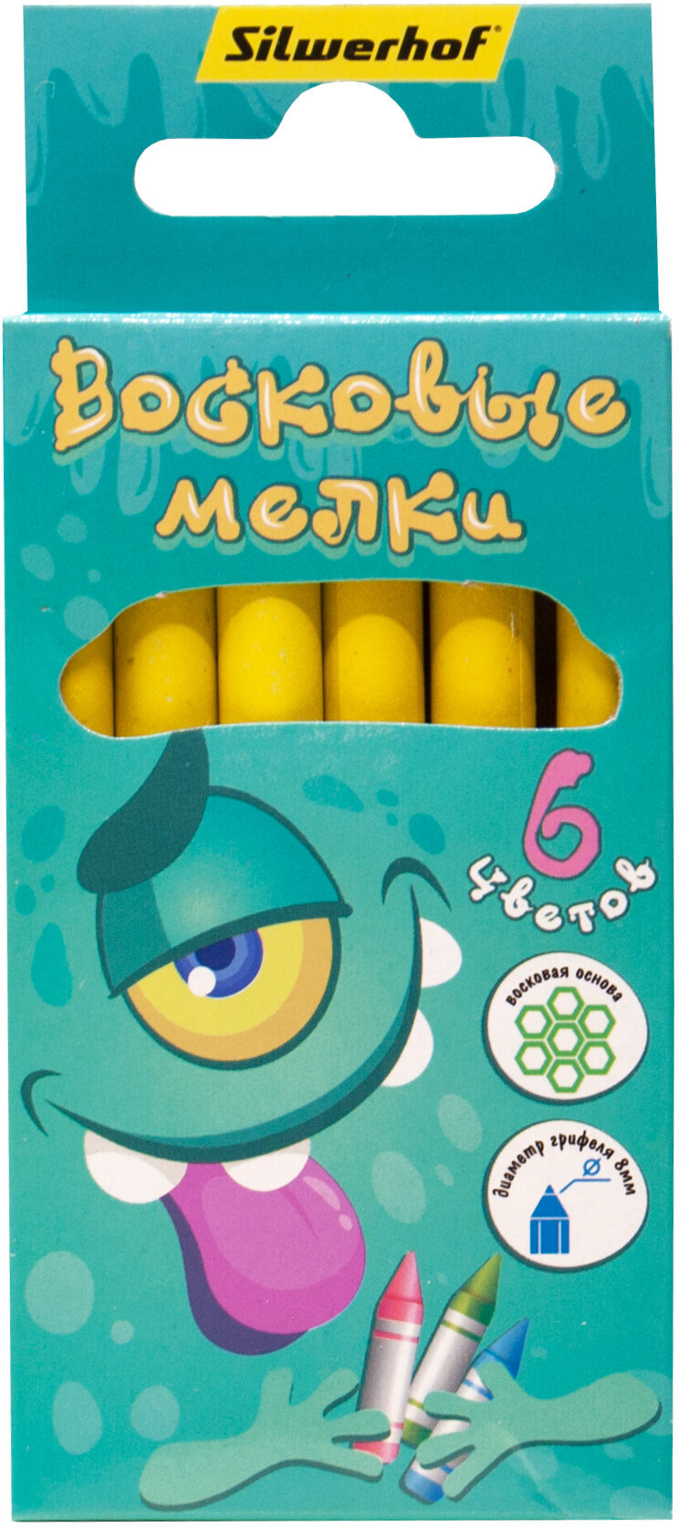 Купить Набор из 8 штук Восковые мелки Silwerhof Монстрики круглые 6цв. дл.89ммд.8мм картон.кор./европод.