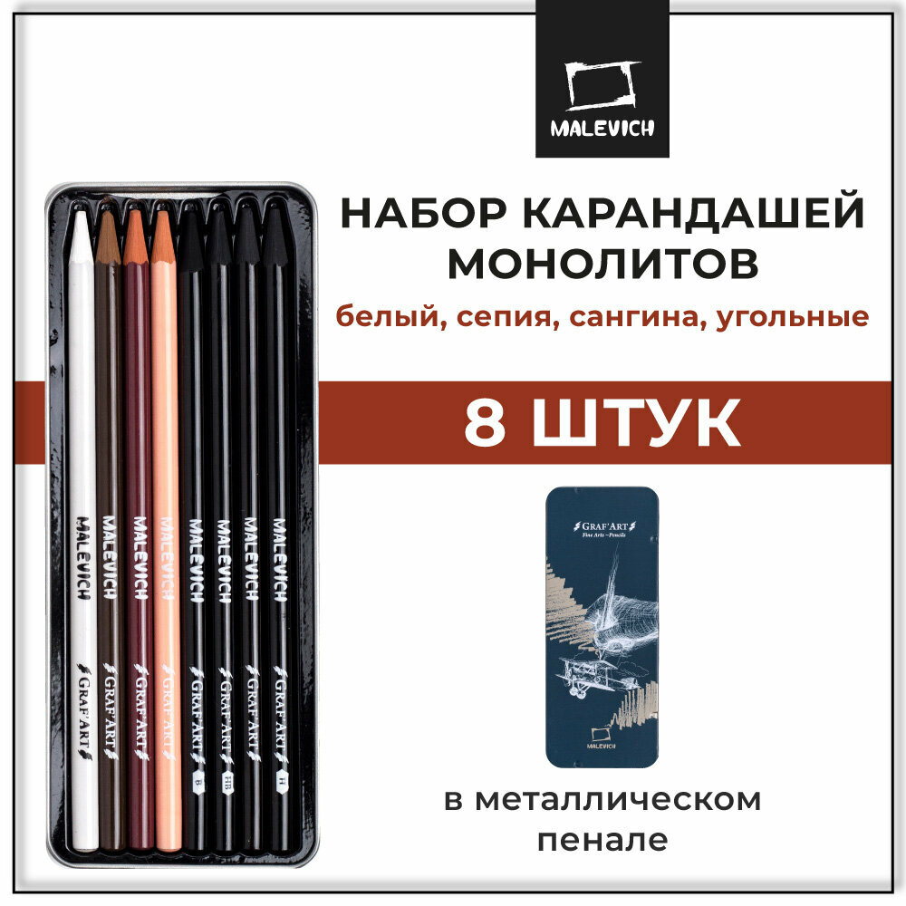 Купить Набор графических материалов Малевичъ в металлической коробке, 8 шт