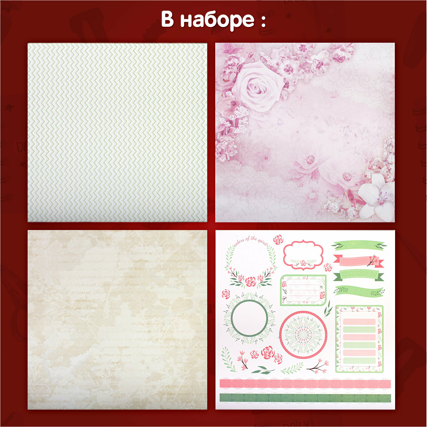 Купить Бумага для скрапбукинга, для открыток, творчества, декора 30х30 см Нежность природы, двусторонняя, 12 дизайнов, 180 г/м2, Остров Сокровищ, 662771