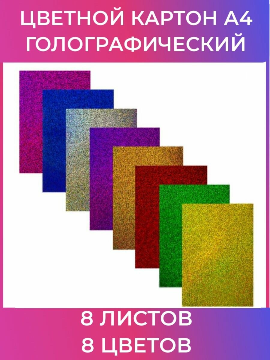 Цветной картон формата А4 голографический для творчества "Золотой песок", набор 8 листов, 8 цветов, 230 г/м2, Остров Сокровищ интересное: